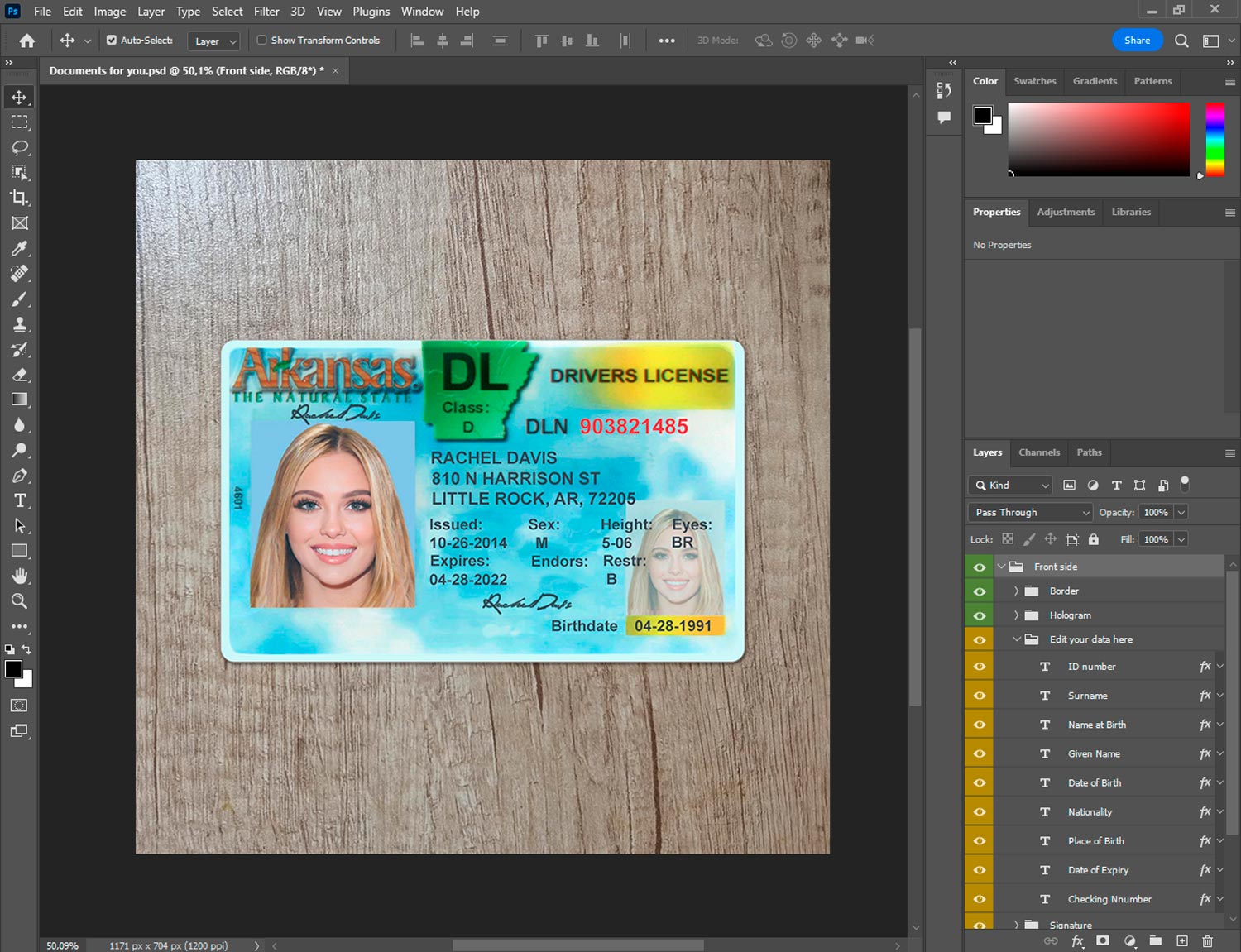 Arkansas Driver’s License Template Editor – PSD + Fonts Included