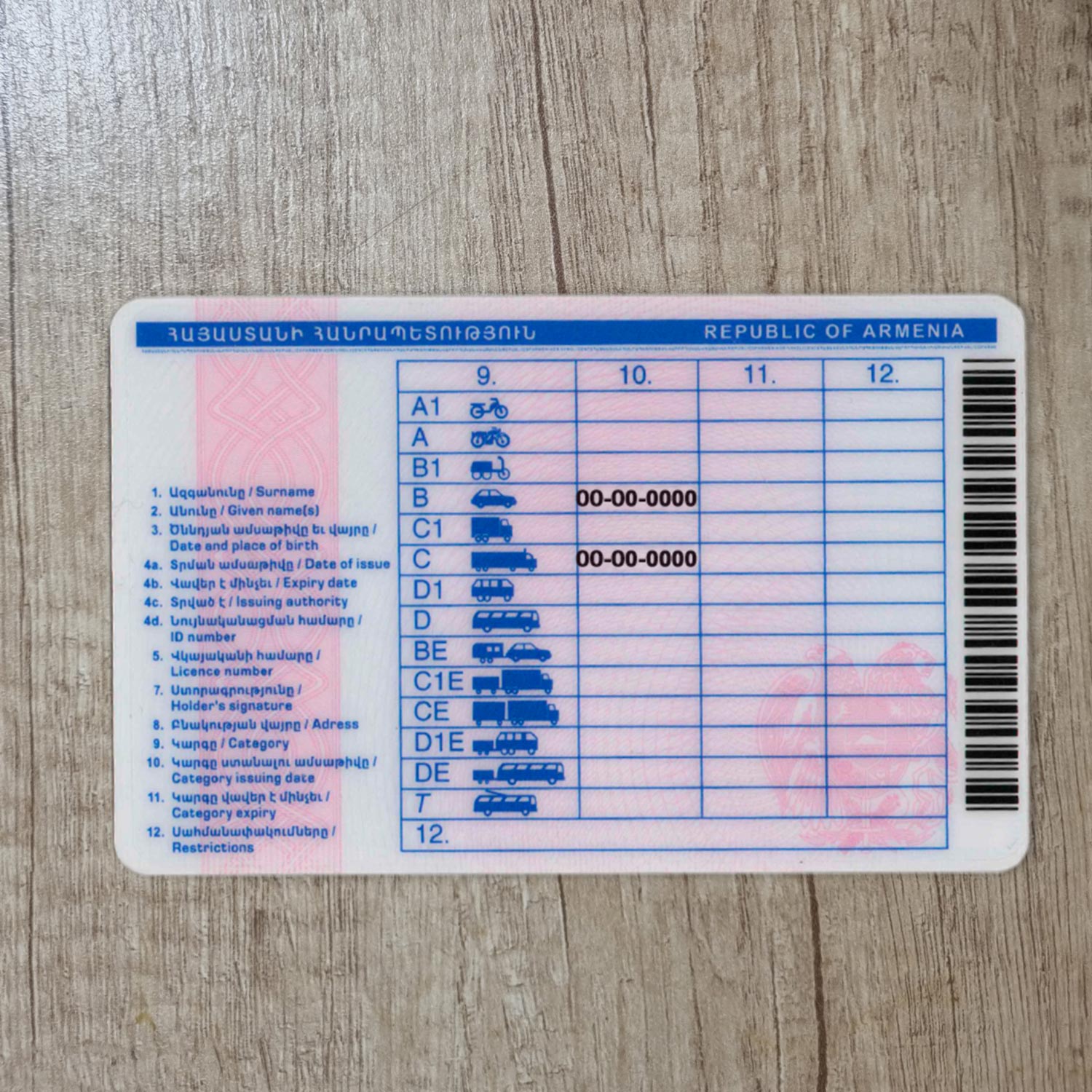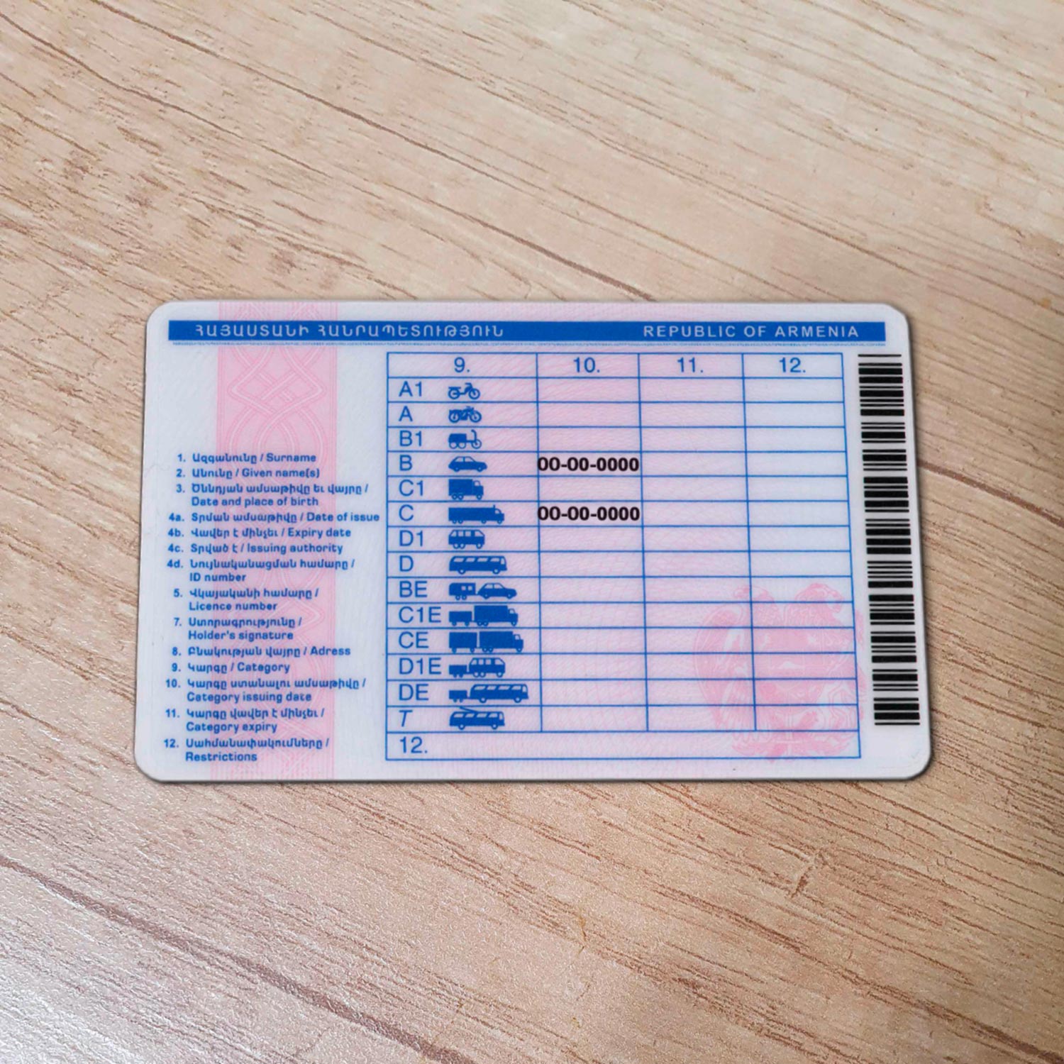Armenia Drivers License template