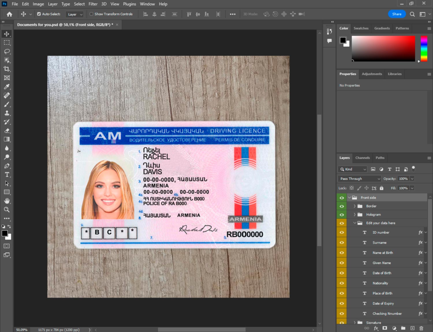 -Armenia Driver License template front.psd + back.psd