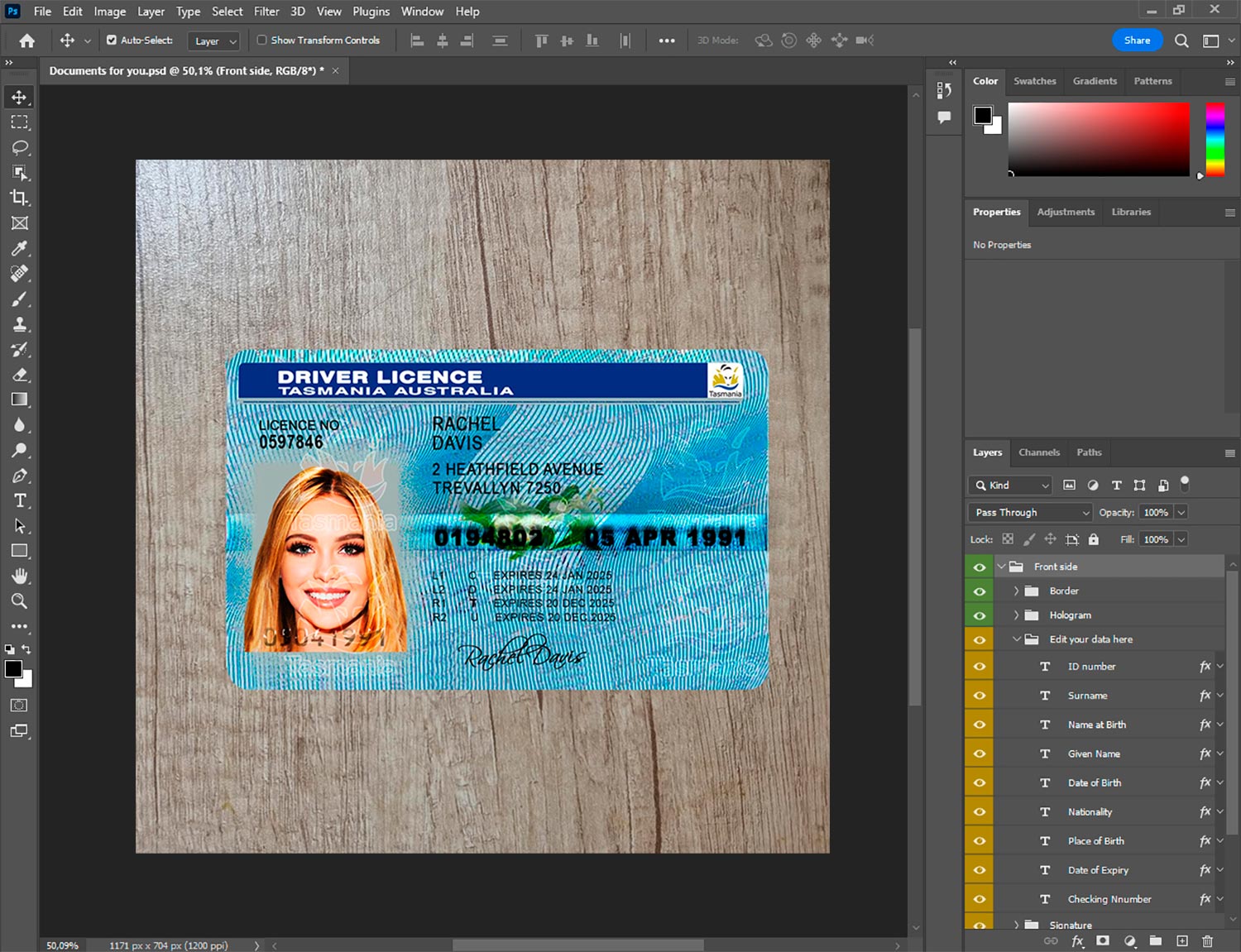 Blank Editable Australia Tasmania Driver License Template – 300 DPI Quality