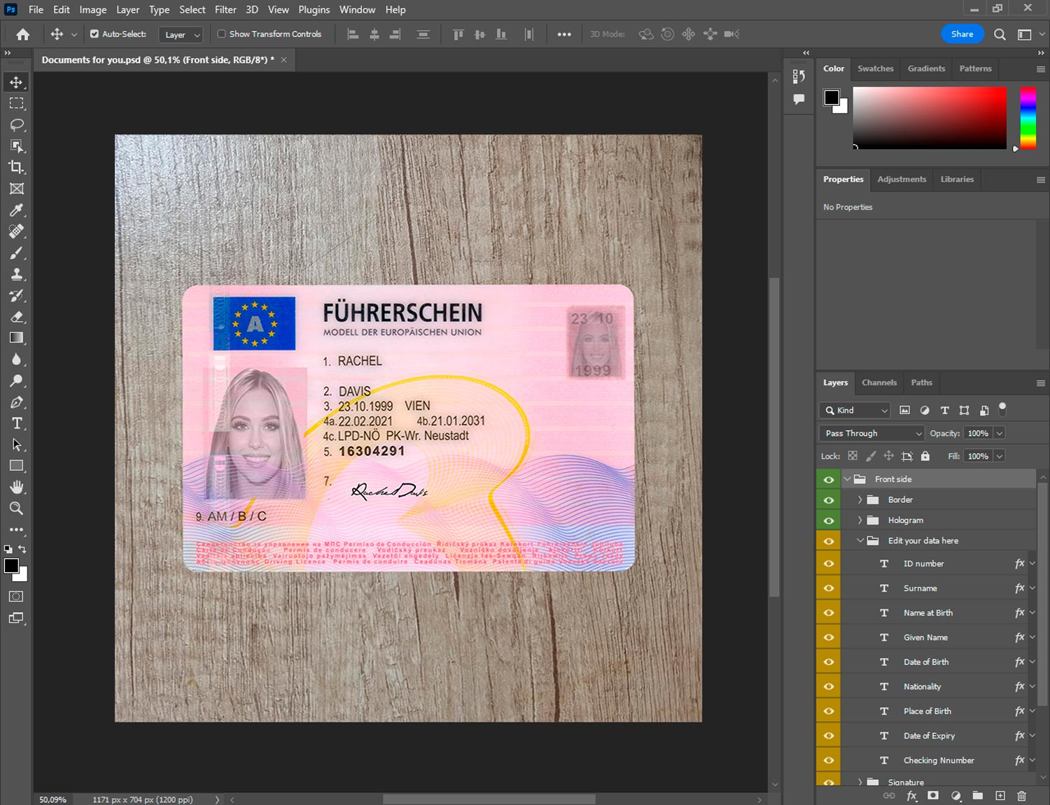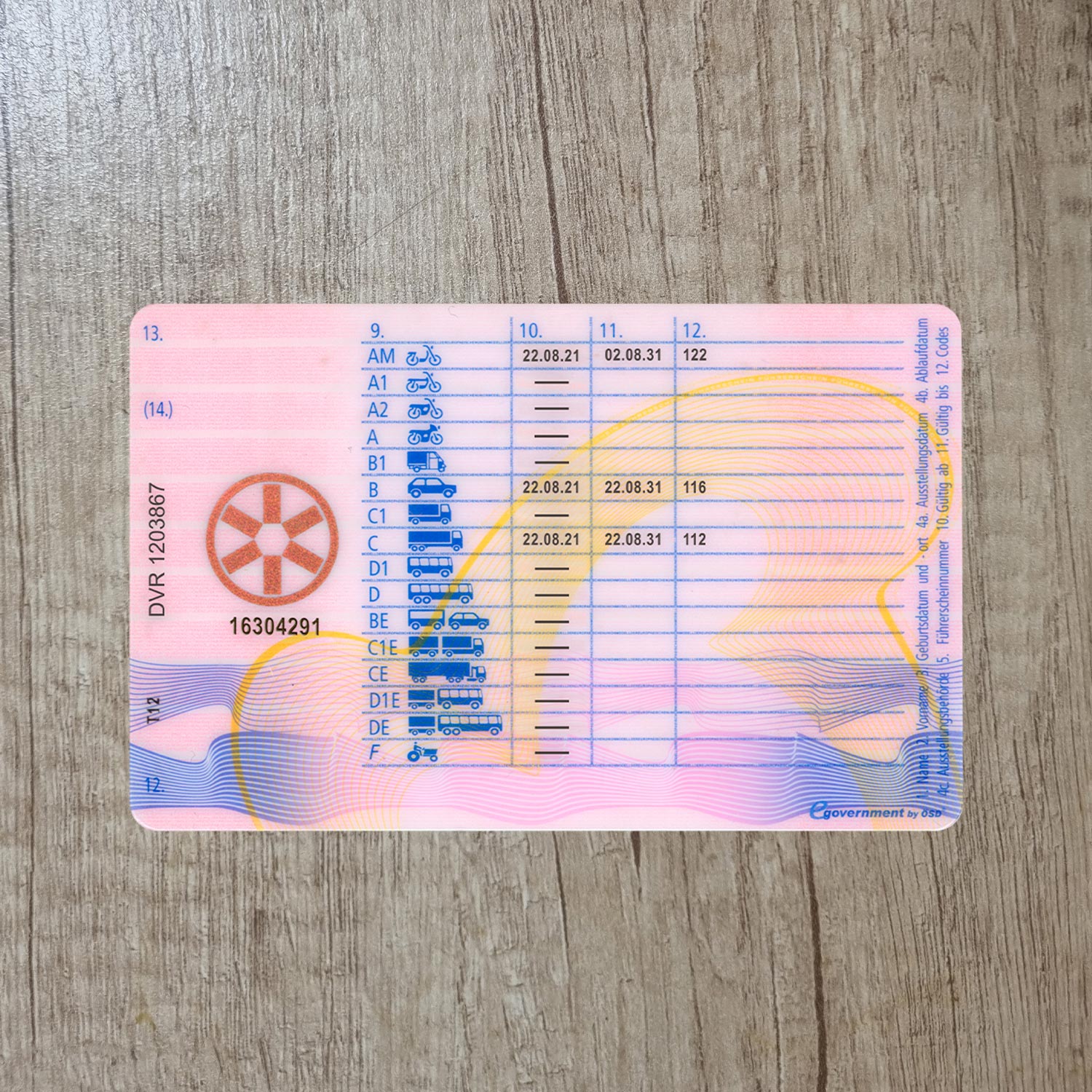 Austria driver license generator template