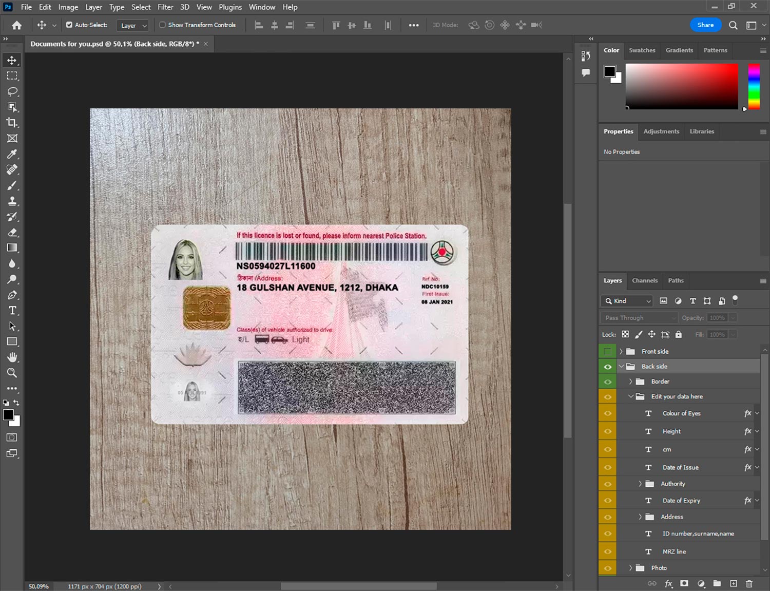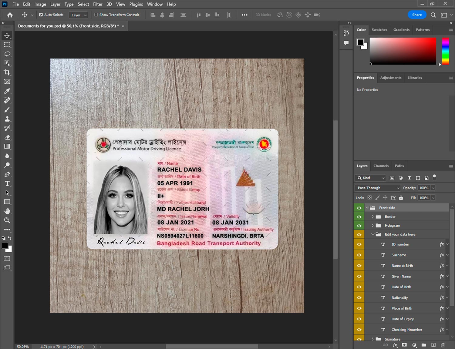 -Bangladesh Driver License template front.psd + back.psd