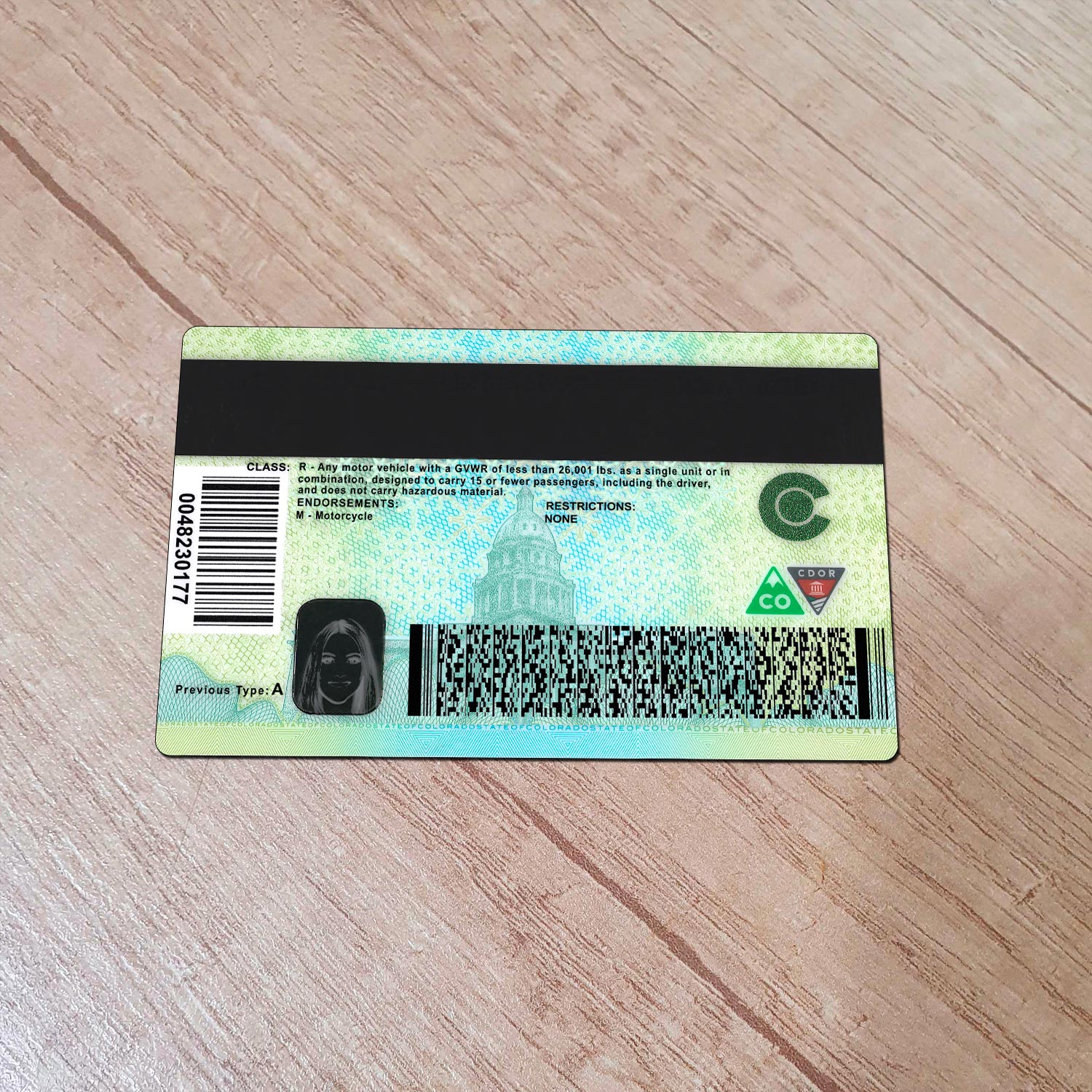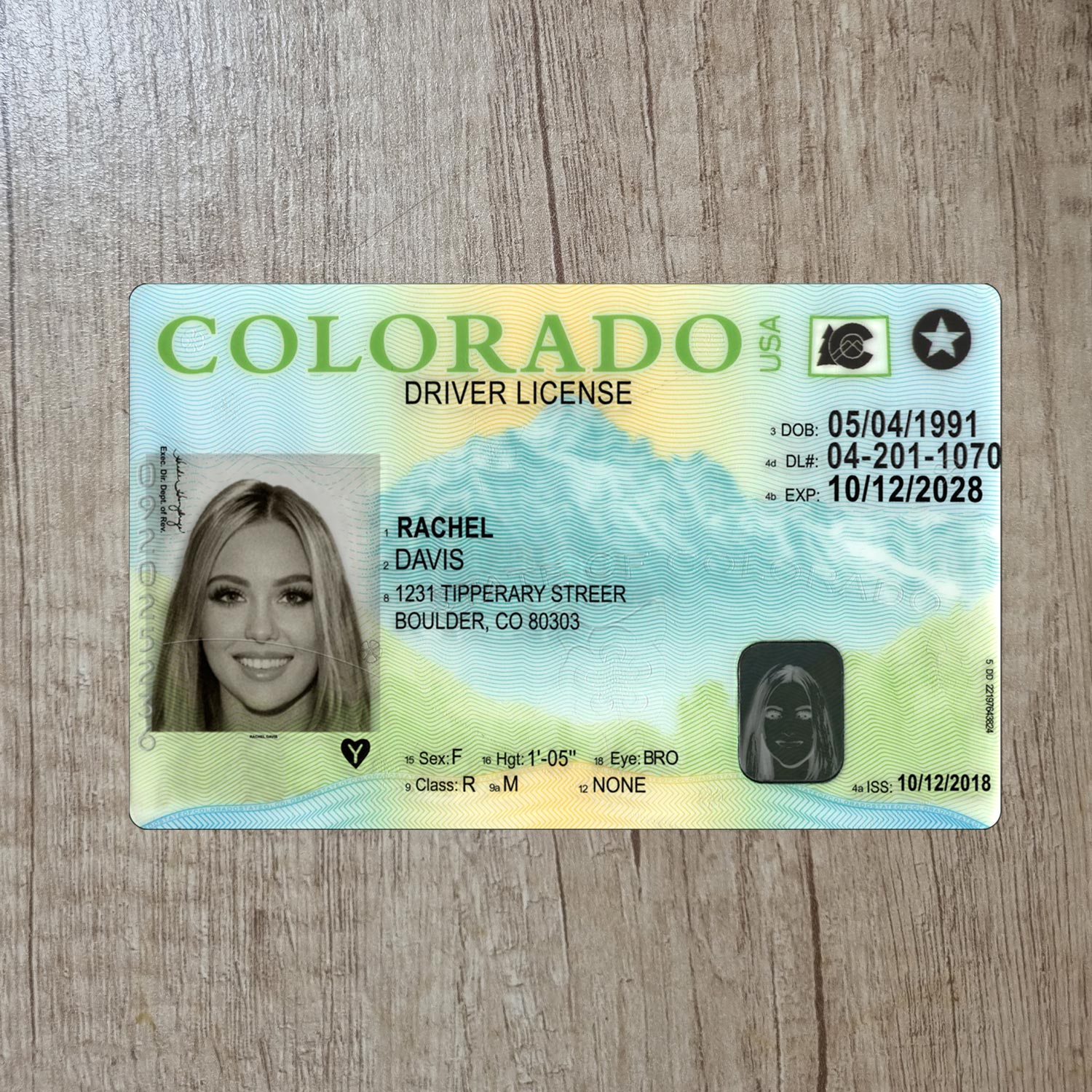 This Photoshop template mirrors the real visual structure of a Colorado state license, down to fonts, layout, signature field, and barcode-ready space — all editable in minutes.