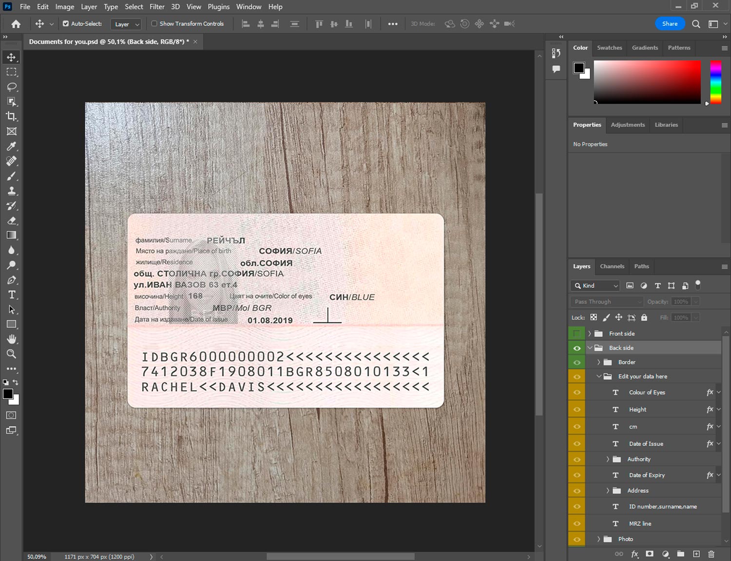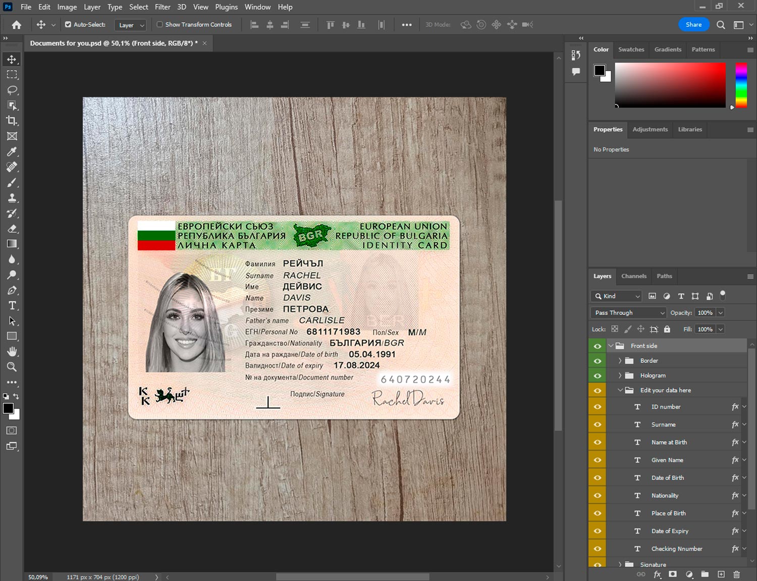 For example, the Bulgaria id card generator template can be used for reading purposes, but it works fine for online verification of any sites for example: