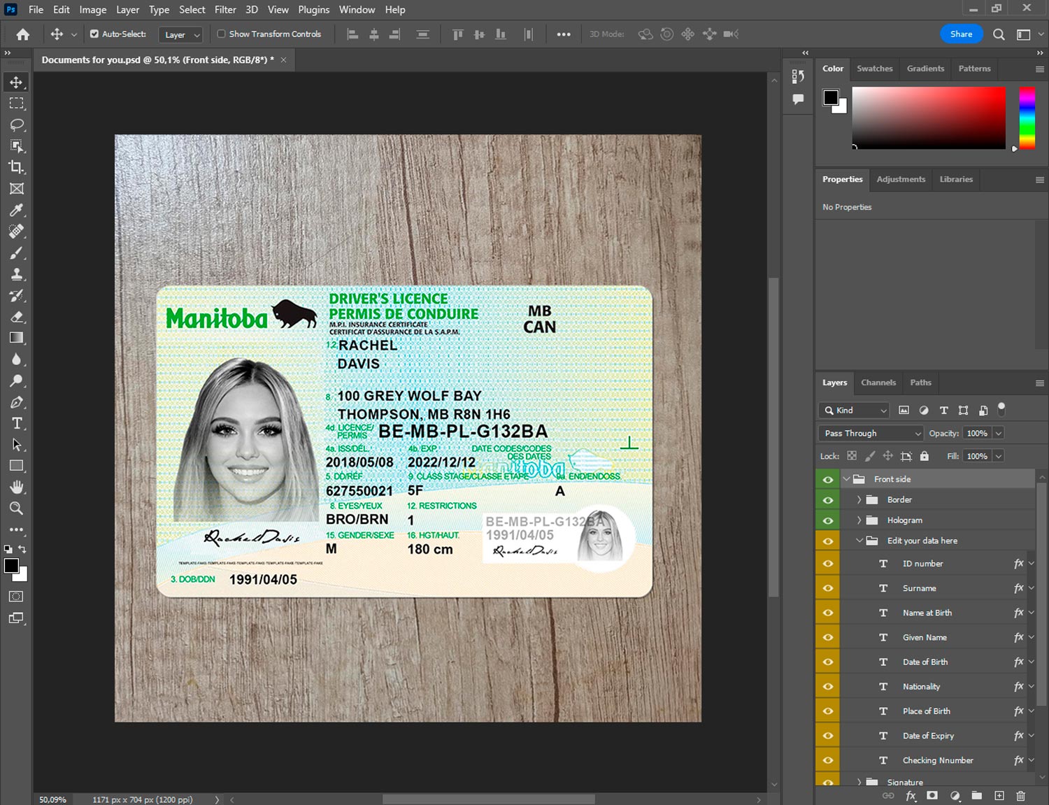 -Canada Manitoba Driver License template front.psd + back.psd
