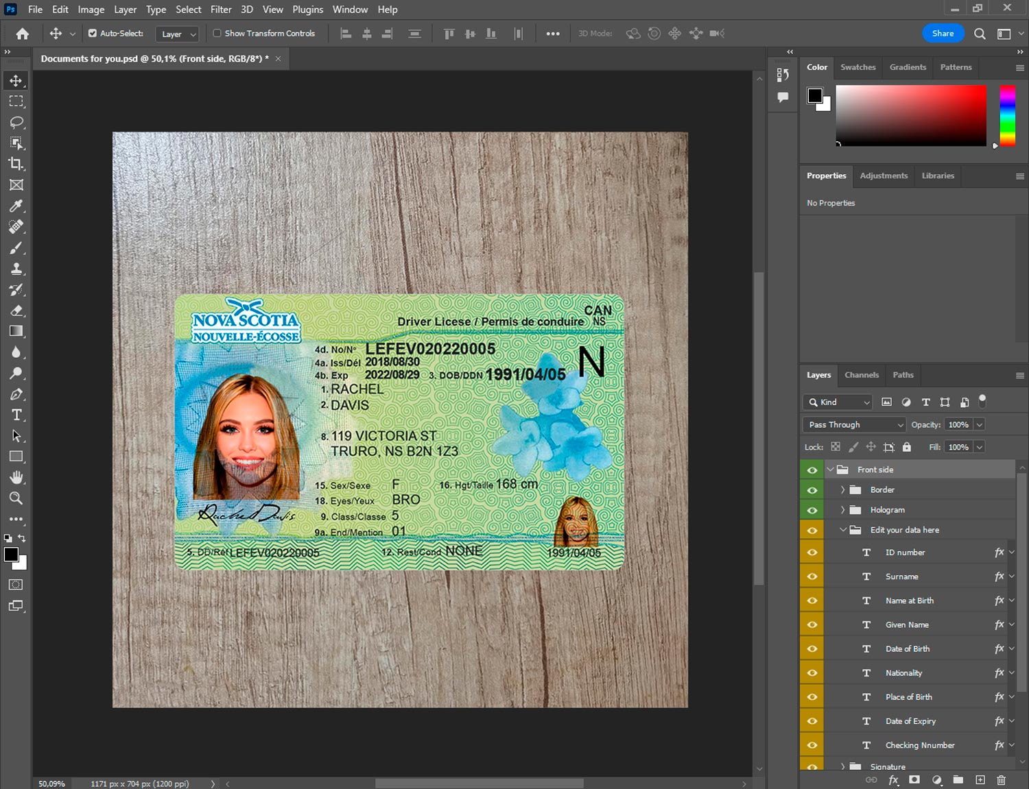 Canada Nova Scotia Driver License Template PSD – Printable Editable Design
