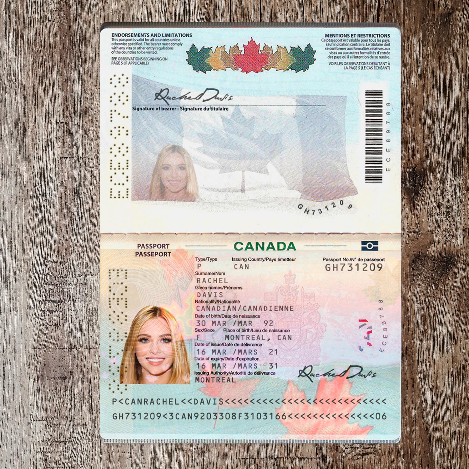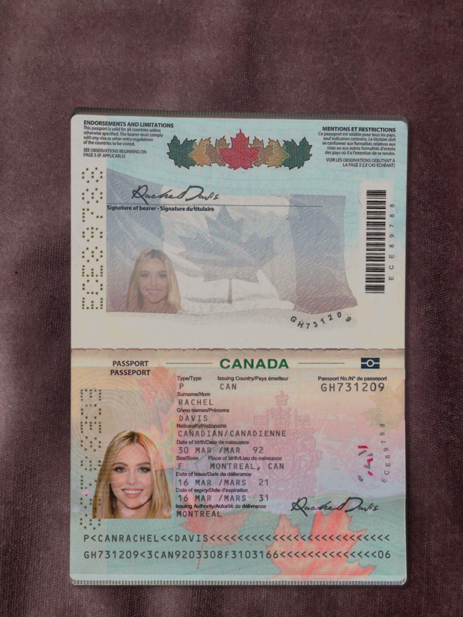 For example, the Canada passport template can be used for reading purposes, but it works fine for online verification of any sites for example: