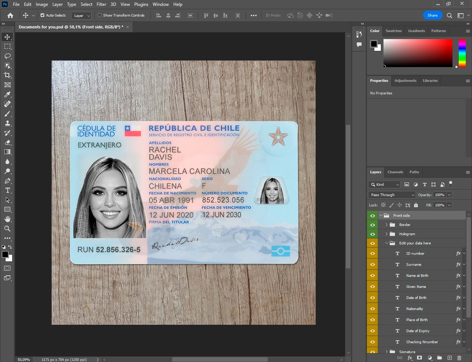 -Chile ID template front.psd + back.psd