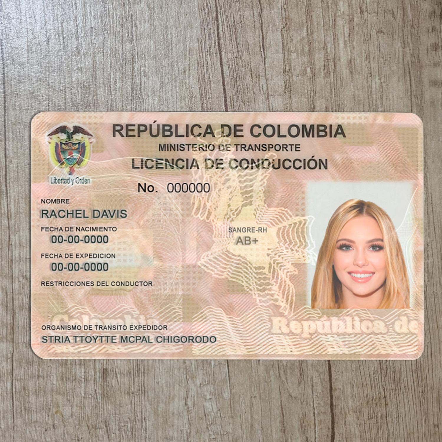 Custom Editable Columbia Driver License Template – Realistic Style
