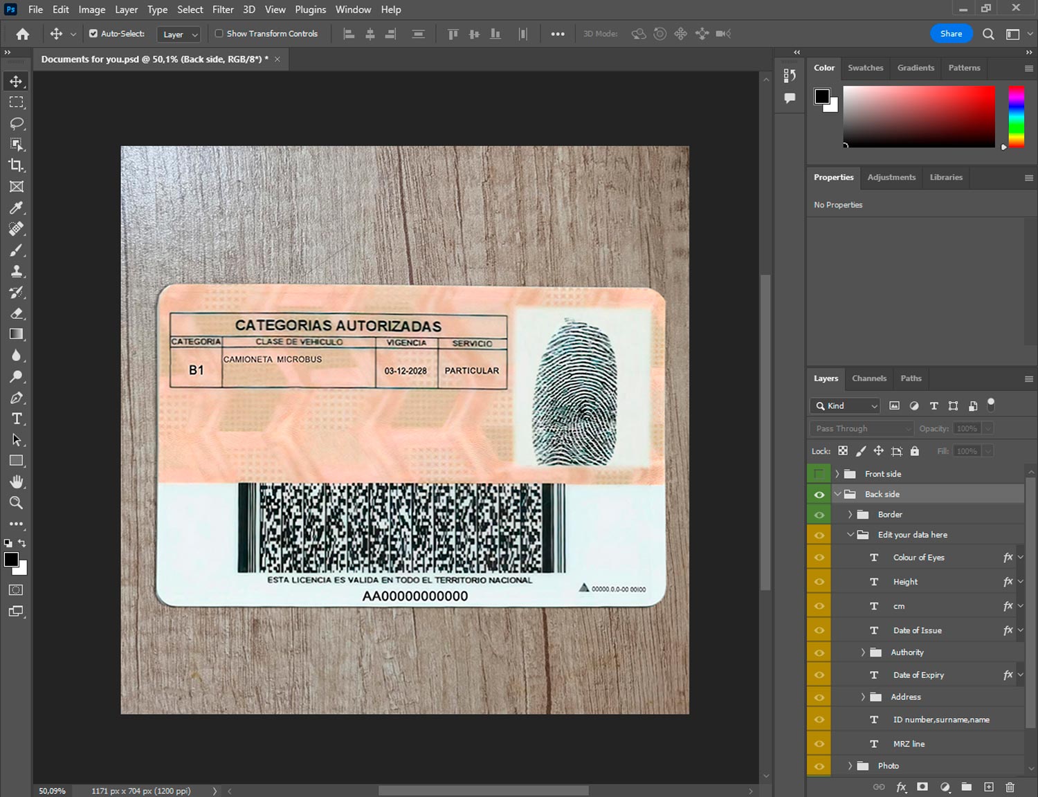 -Columbia Driver License template front.psd + back.psd