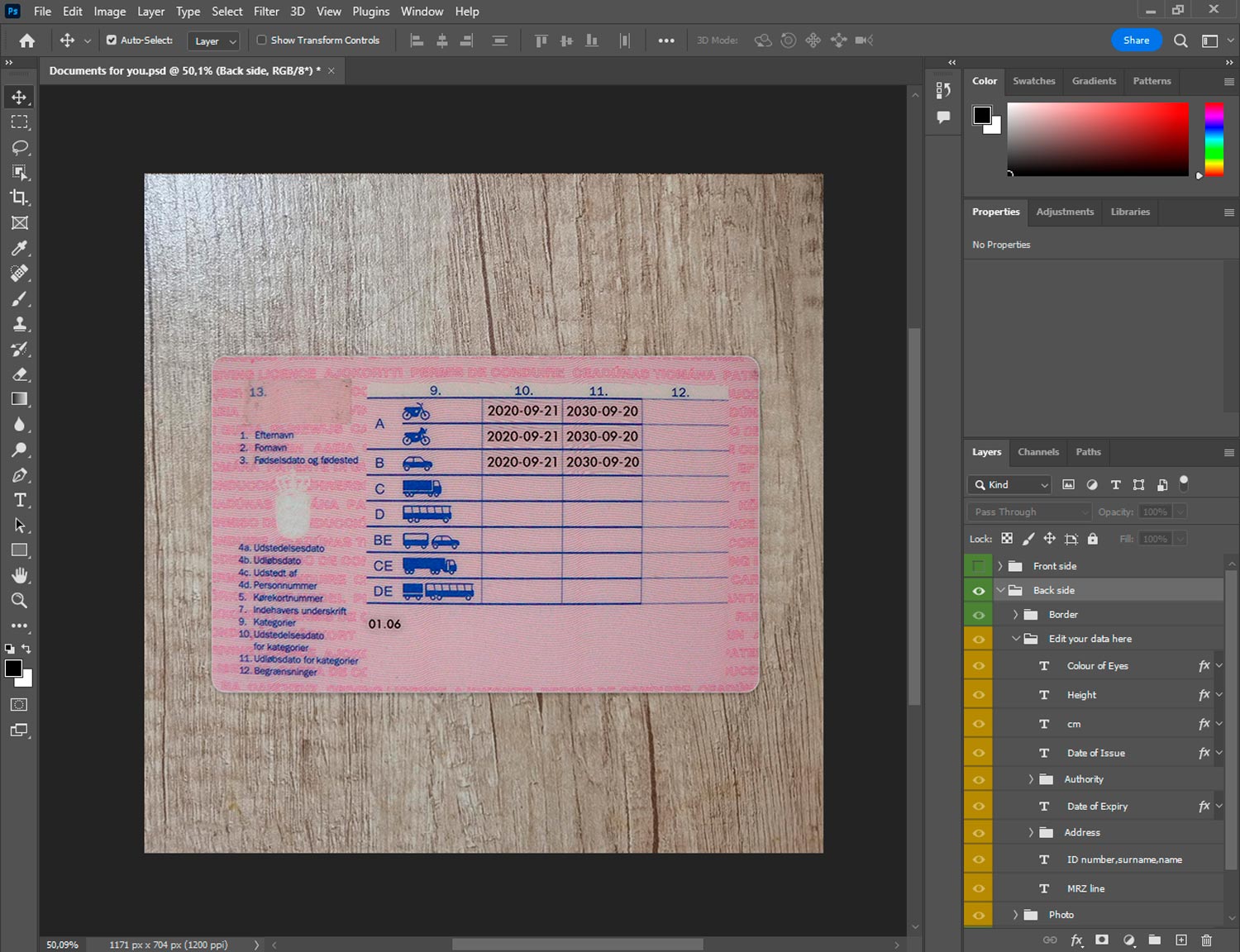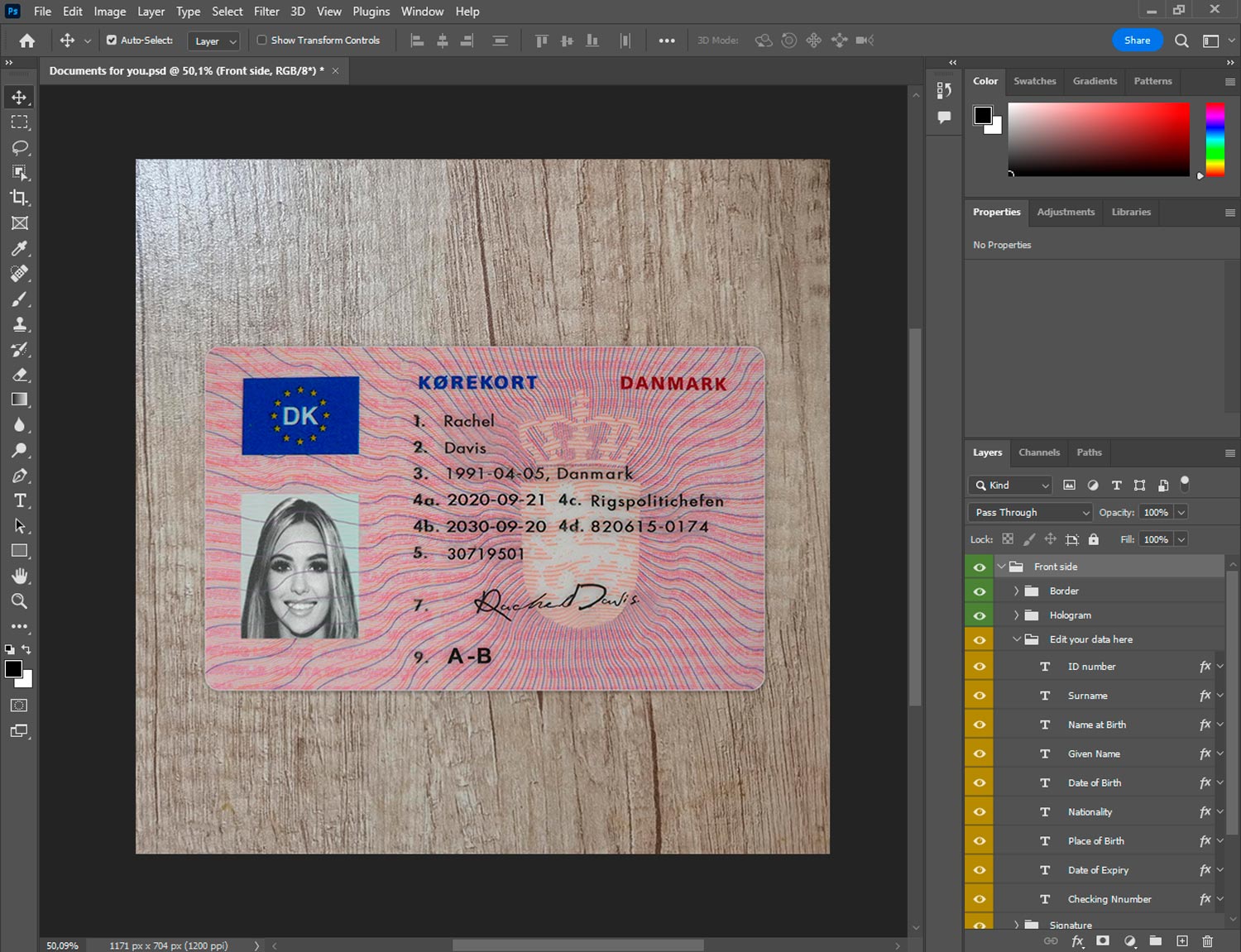 Editable Denmark Driver License PSD Template – High-Quality Layout