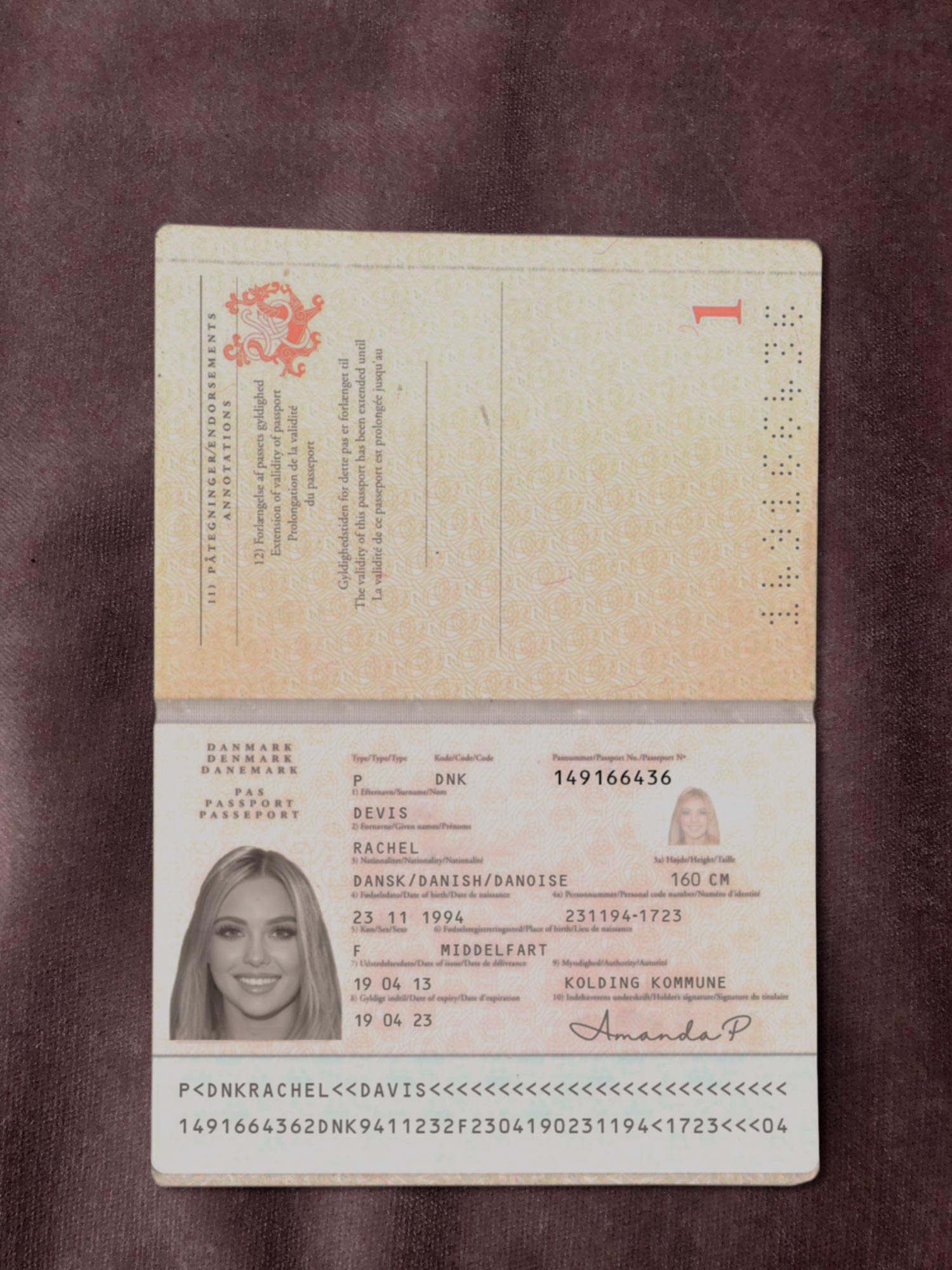 For example, the Denmark Passport Template can be used for reading purposes, but it works fine for online verification of any sites for example: