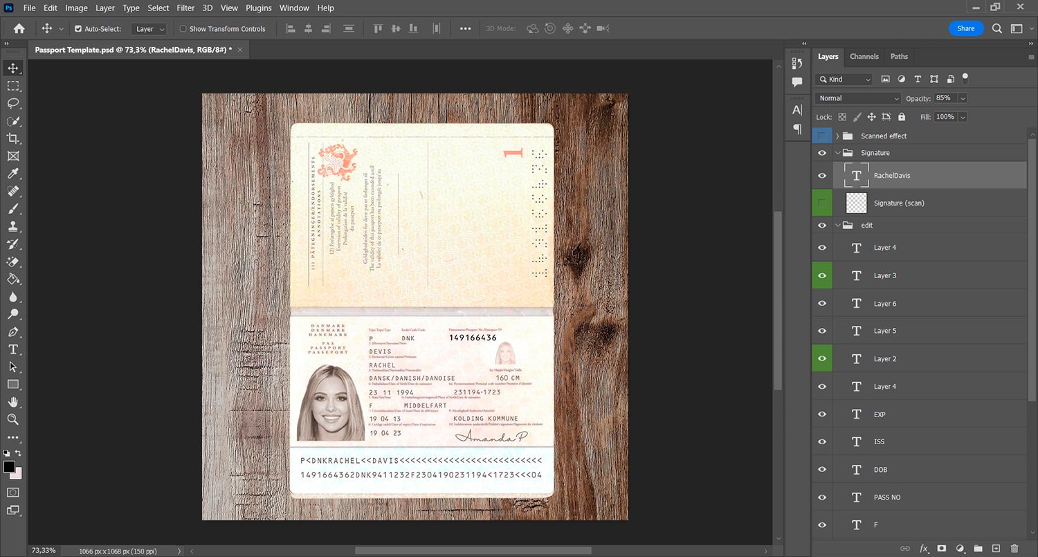 -Denmark Passport Template front.psd + back.psd