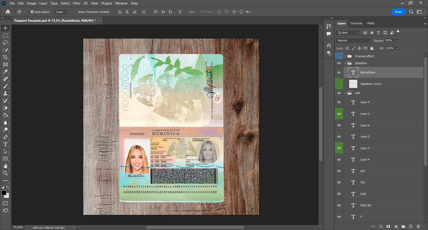 For example, the Dominica Passport Template can be used for reading purposes, but it works fine for online verification of any sites for example: