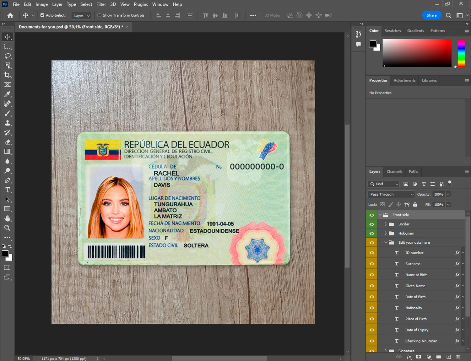 -Ecuador ID template front.psd + back.psd
