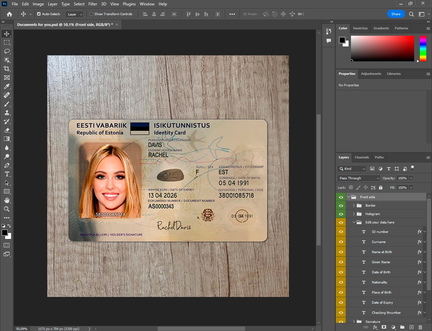 Estonia id card generator template V2