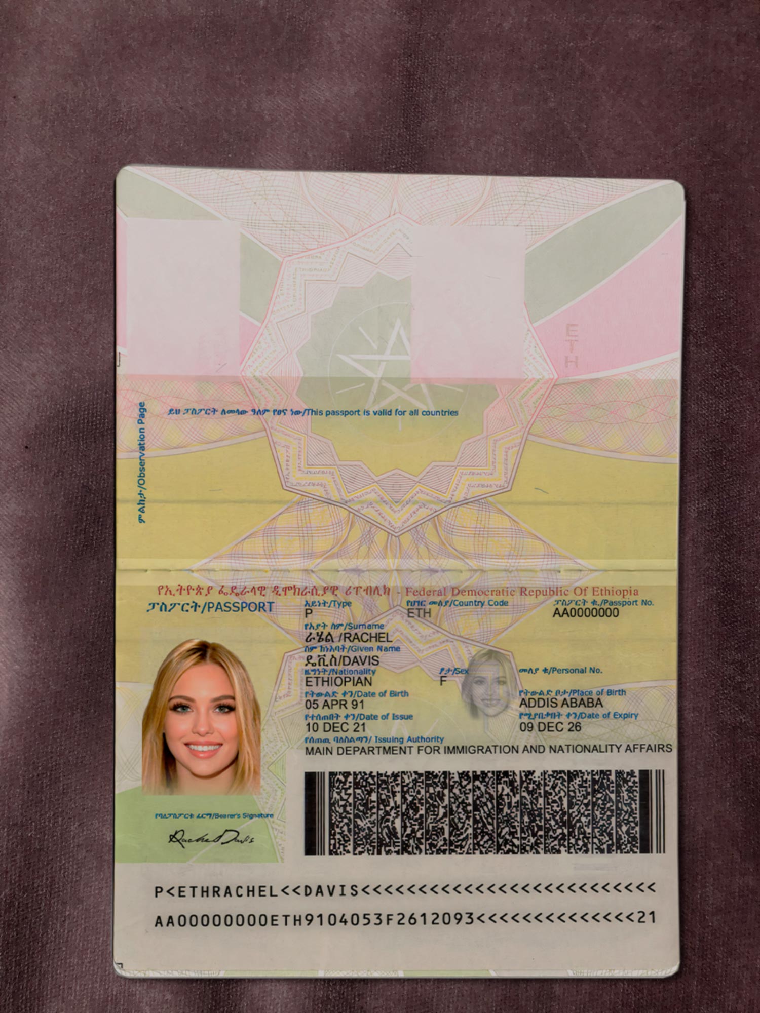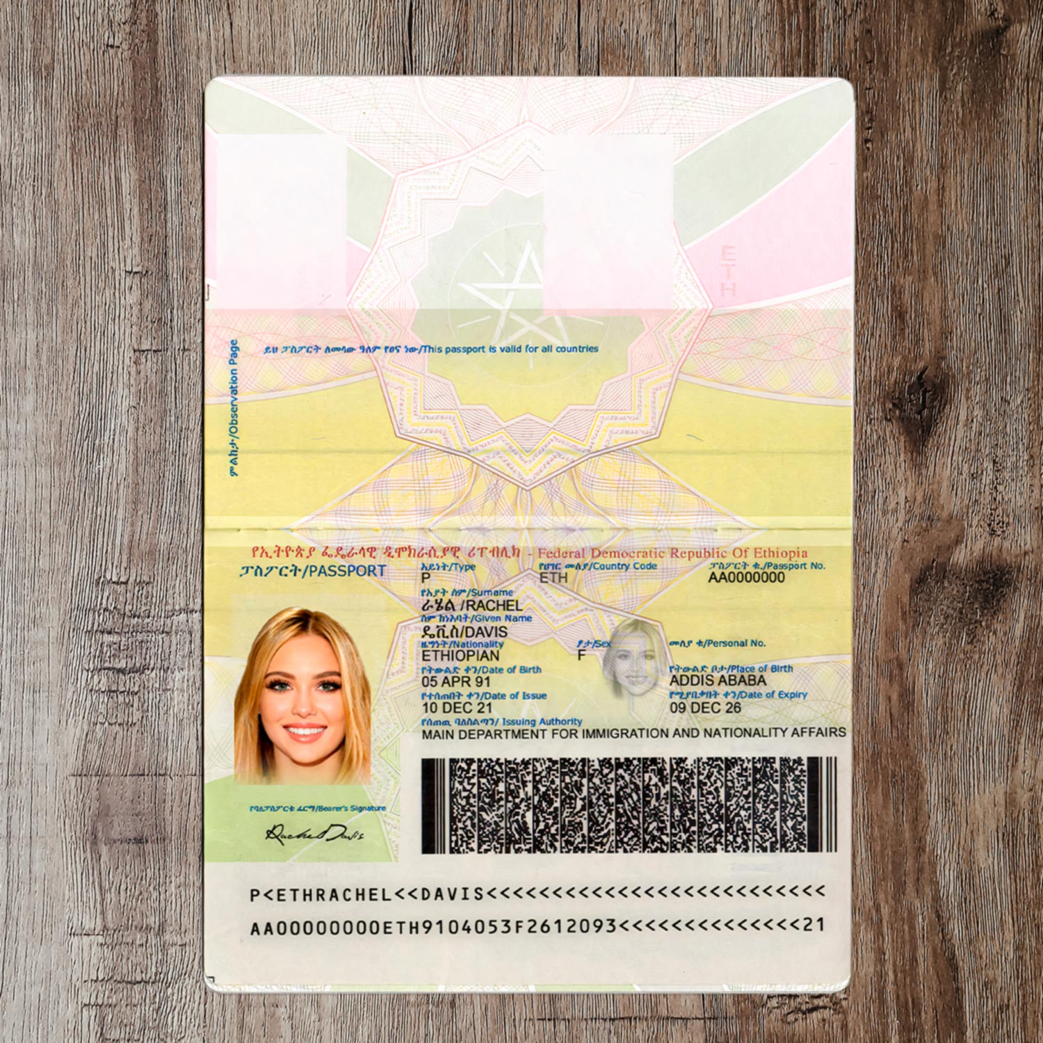 For example, the Ethiopia Passport Template can be used for reading purposes, but it works fine for online verification of any sites for example: