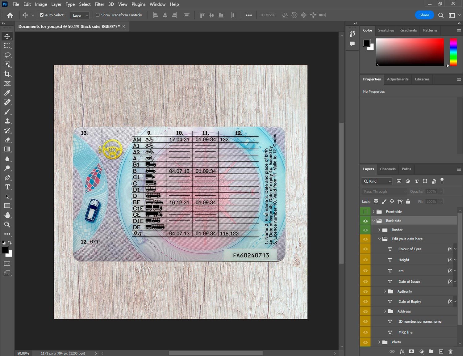 -Fake Driving licence UK Template front.psd + back.psd