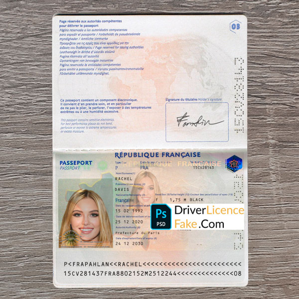-France Passport Template front.psd + back.psd
