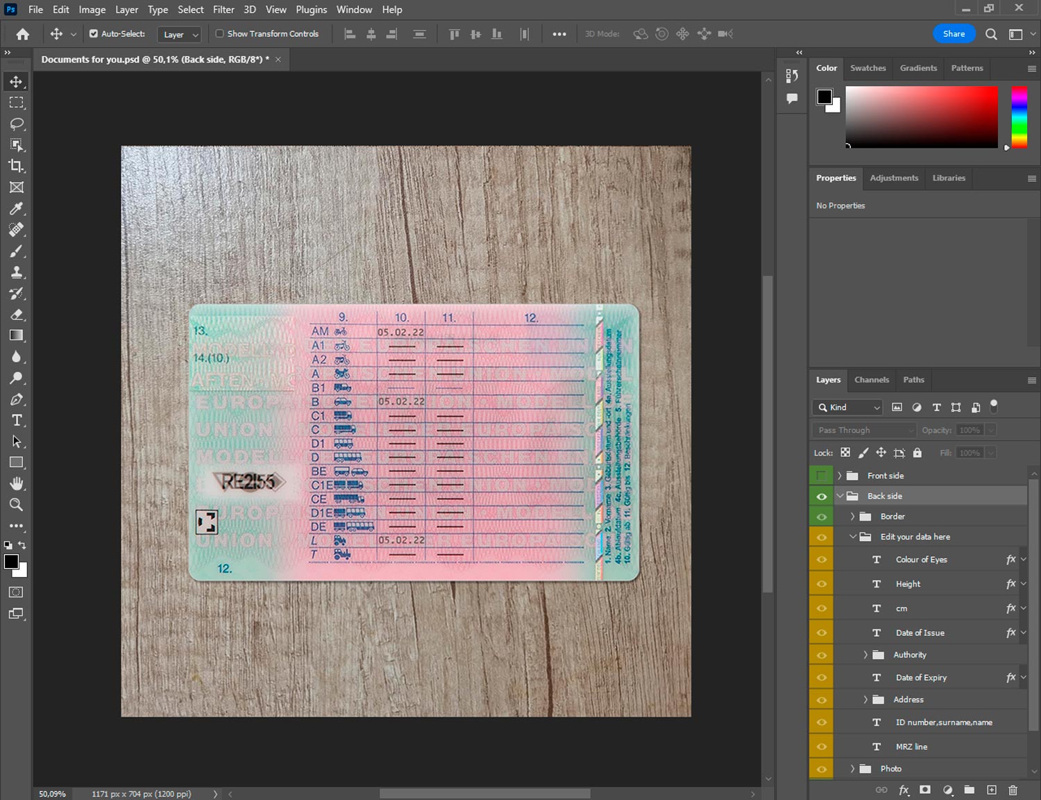 -Germany drivers licence generator template front.psd + back.psd