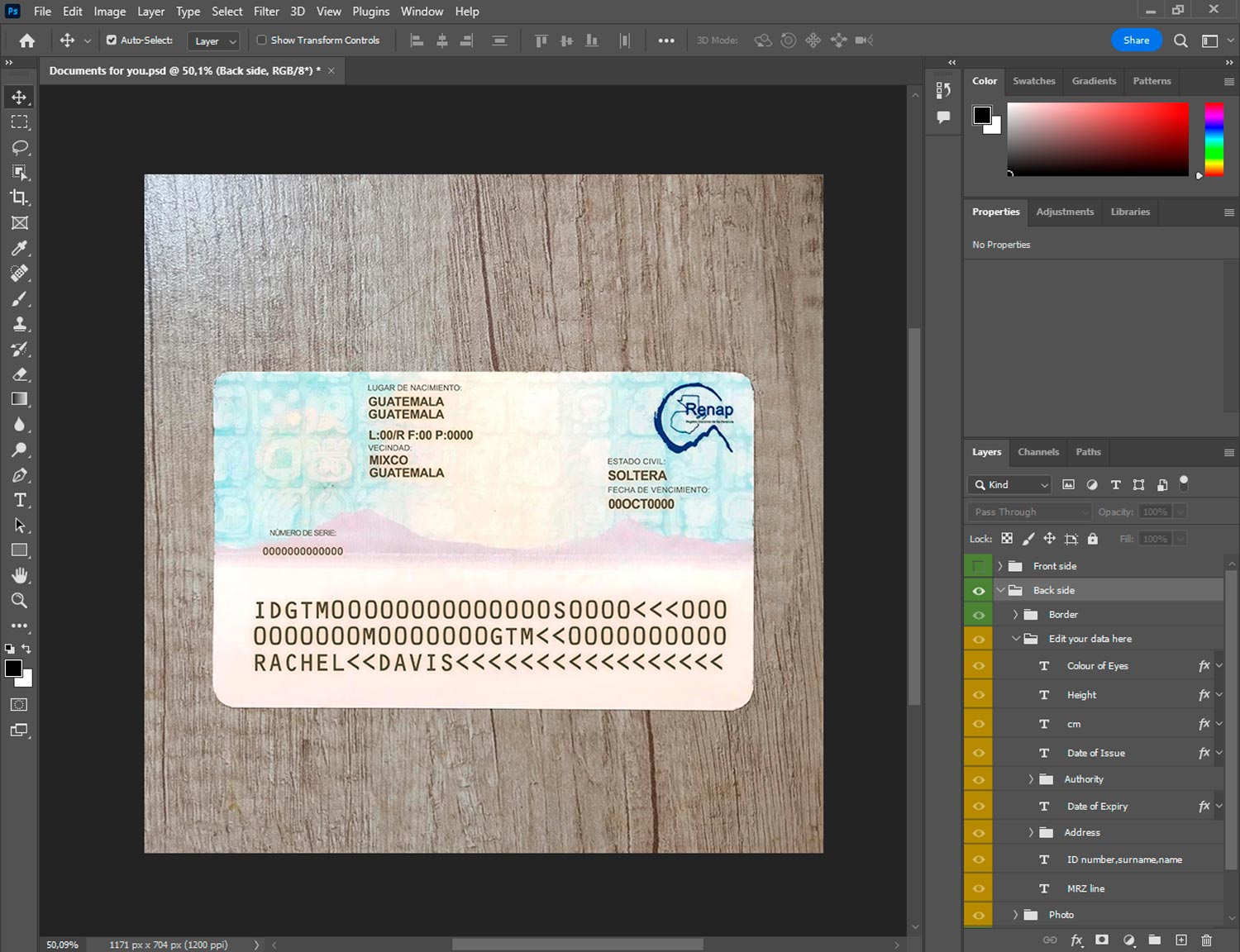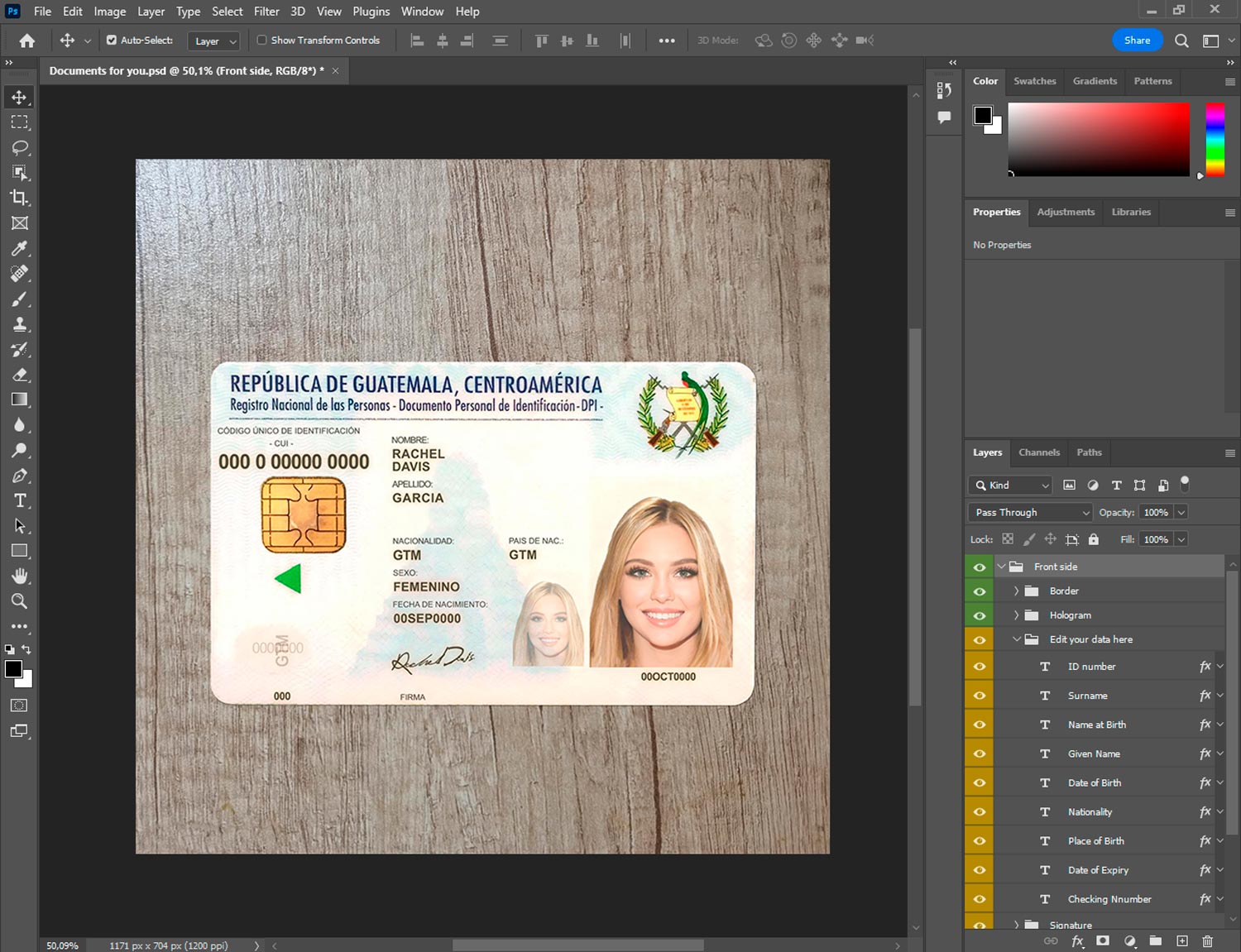 -Guatemala ID template front.psd + back.psd