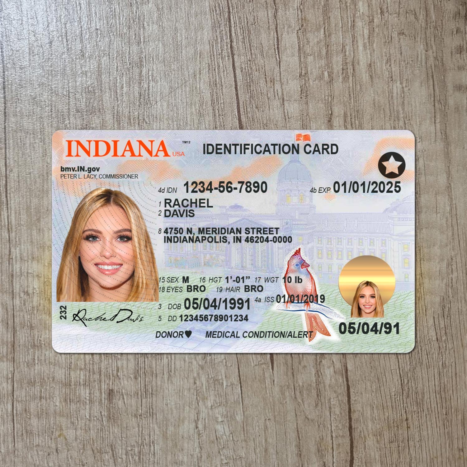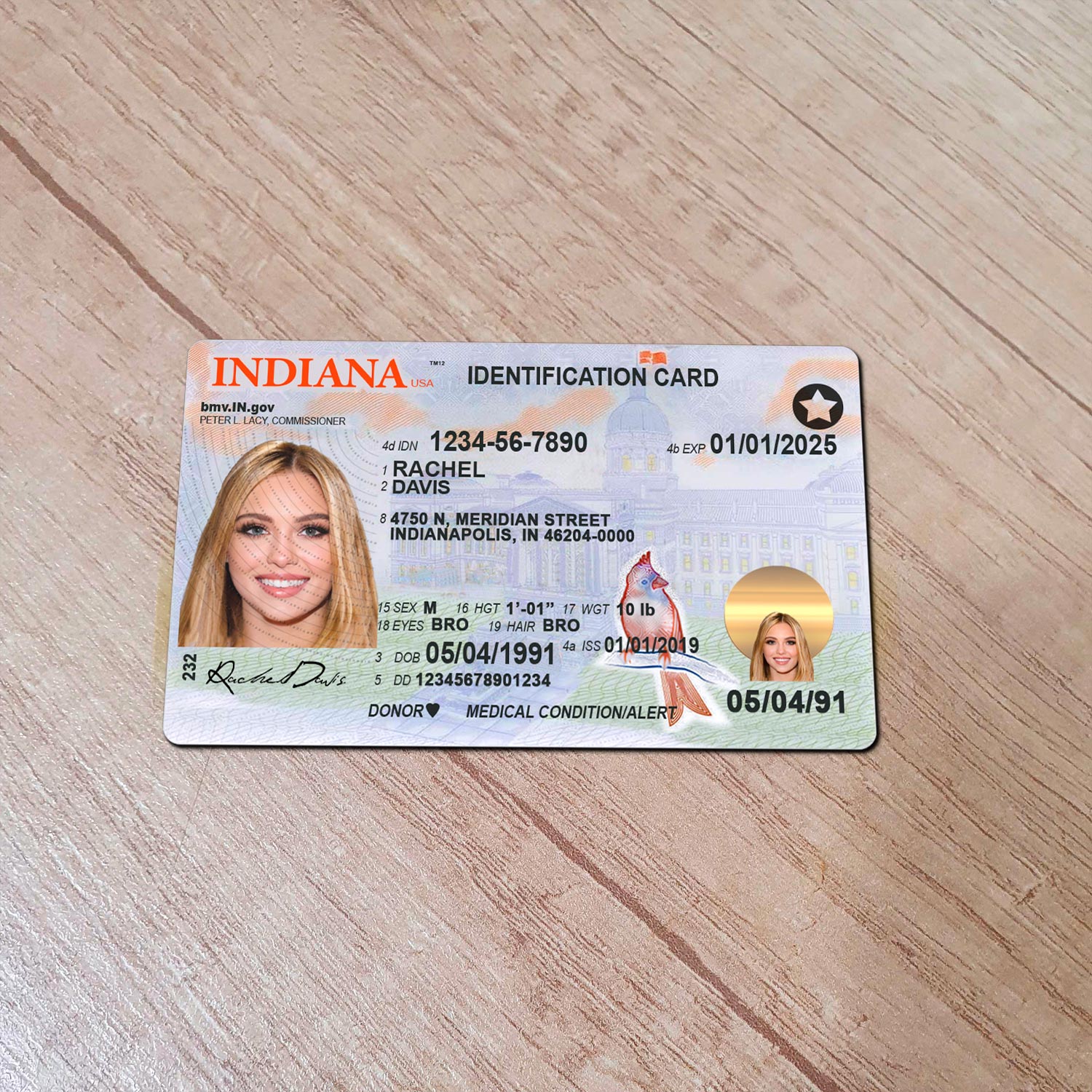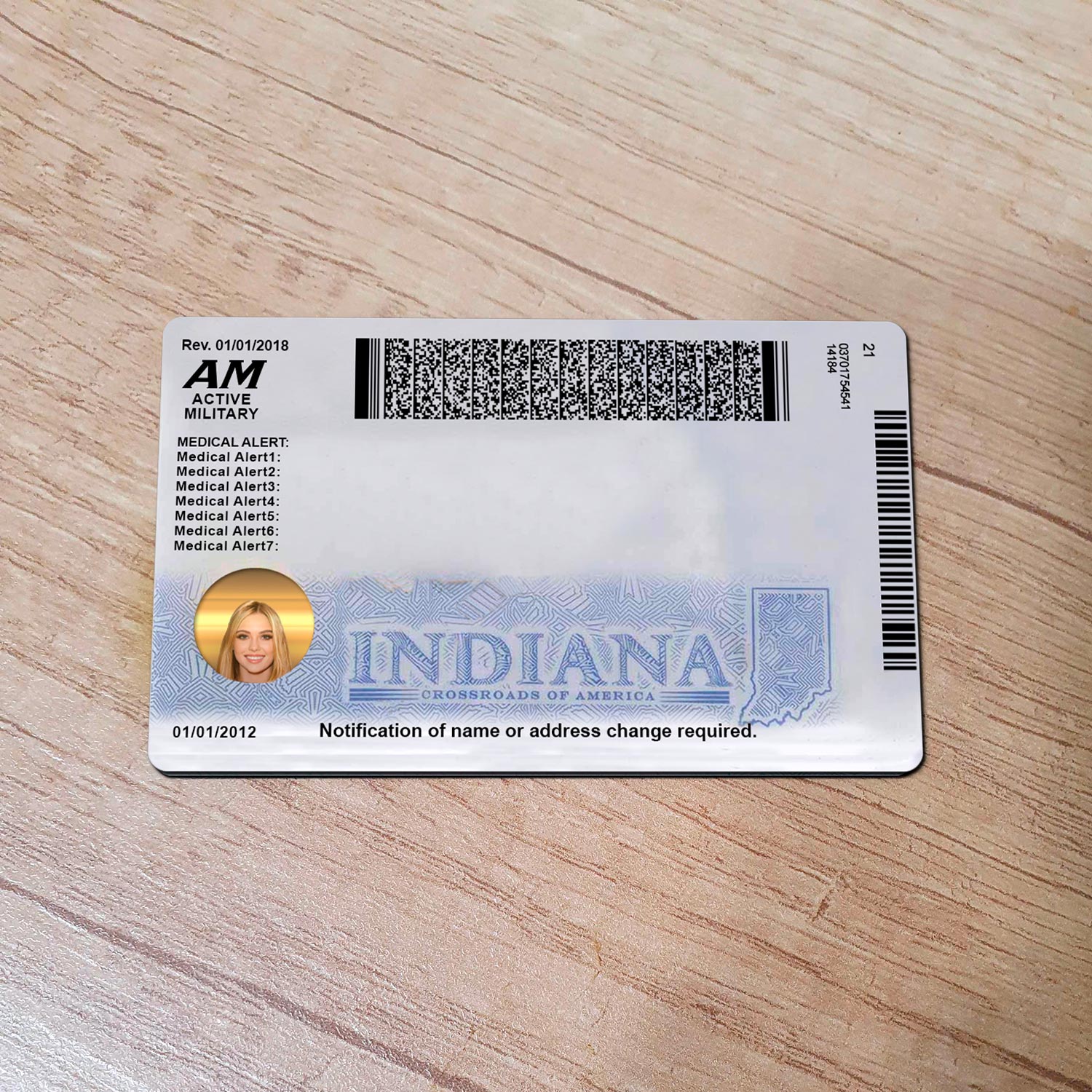 Indiana Id card template