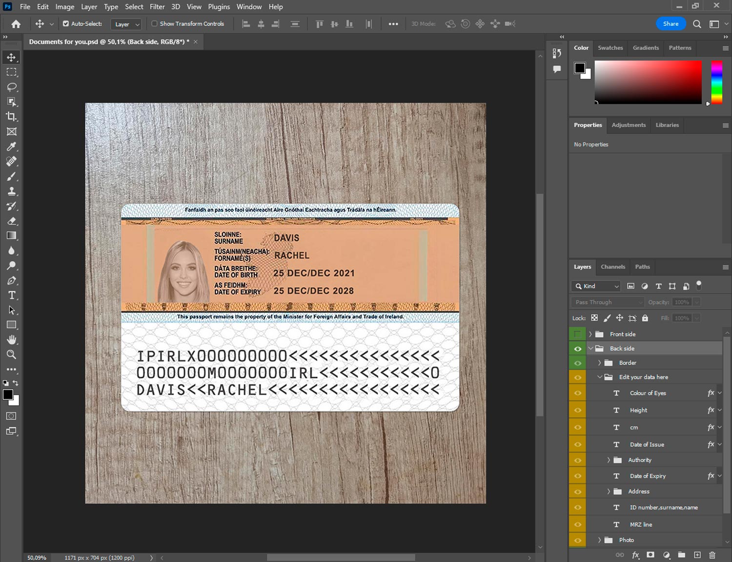 For example, the Ireland id card generator template can be used for reading purposes, but it works fine for online verification of any sites for example: