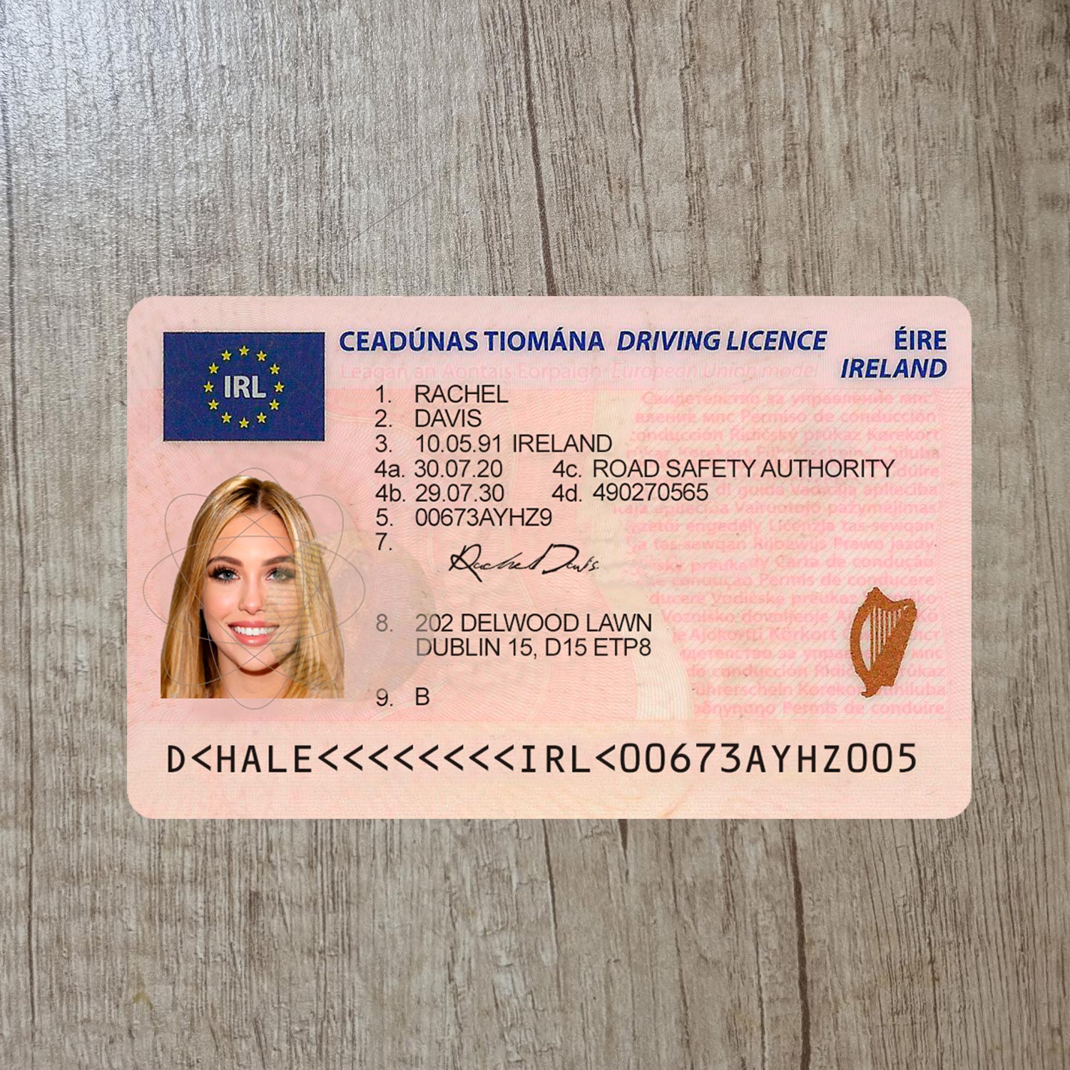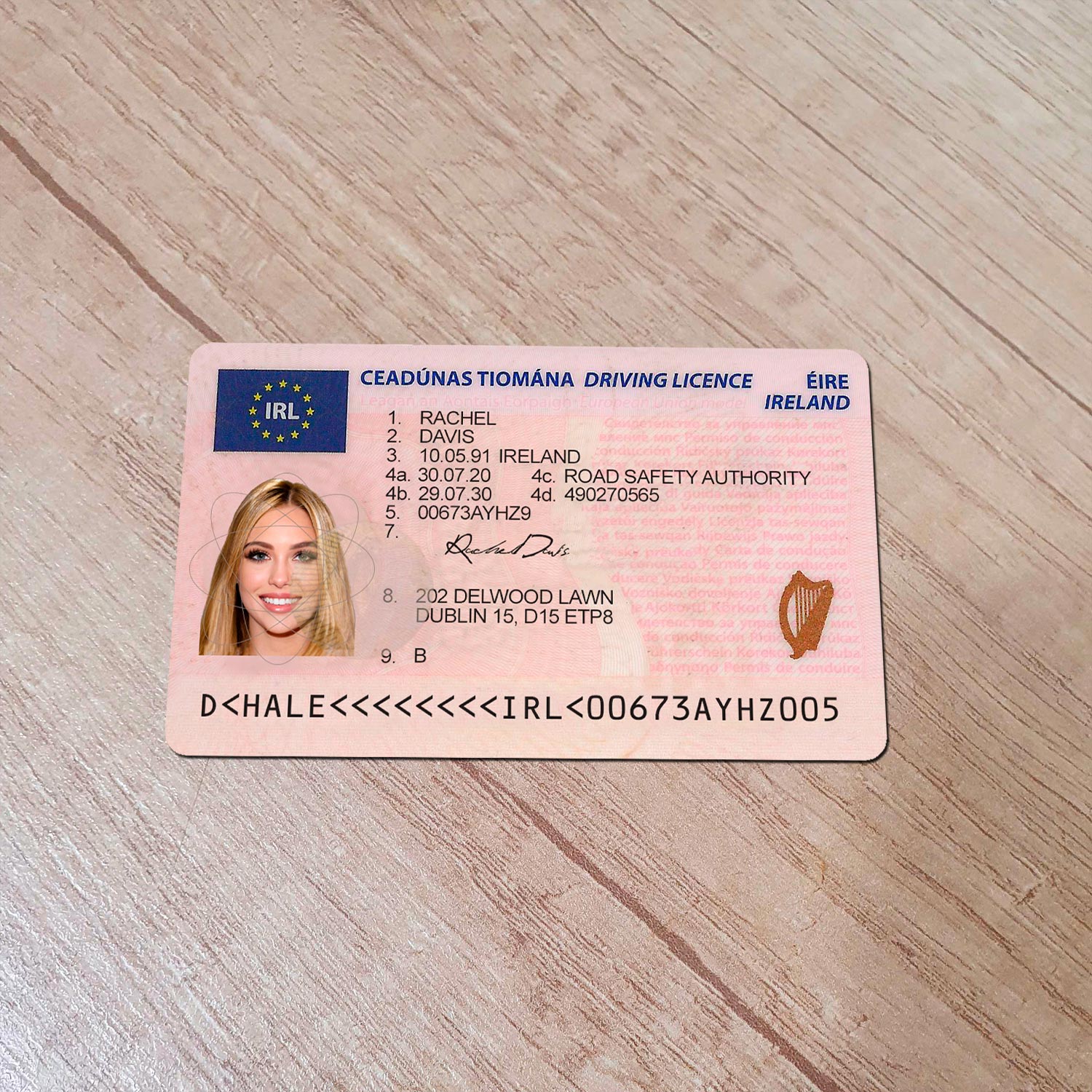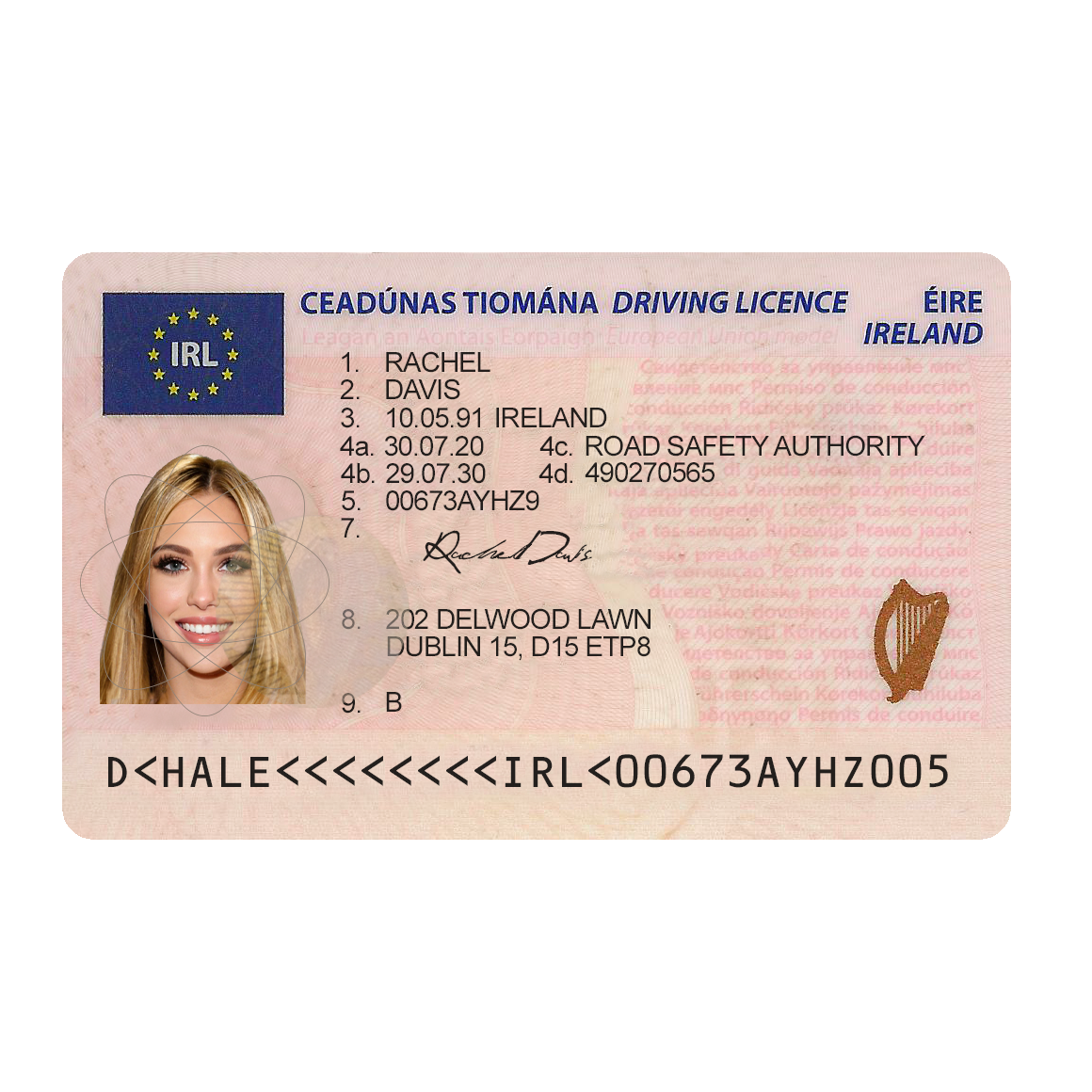 For example, the Irish driver license generator template can be used for reading purposes, but it works fine for online verification of any sites for example: