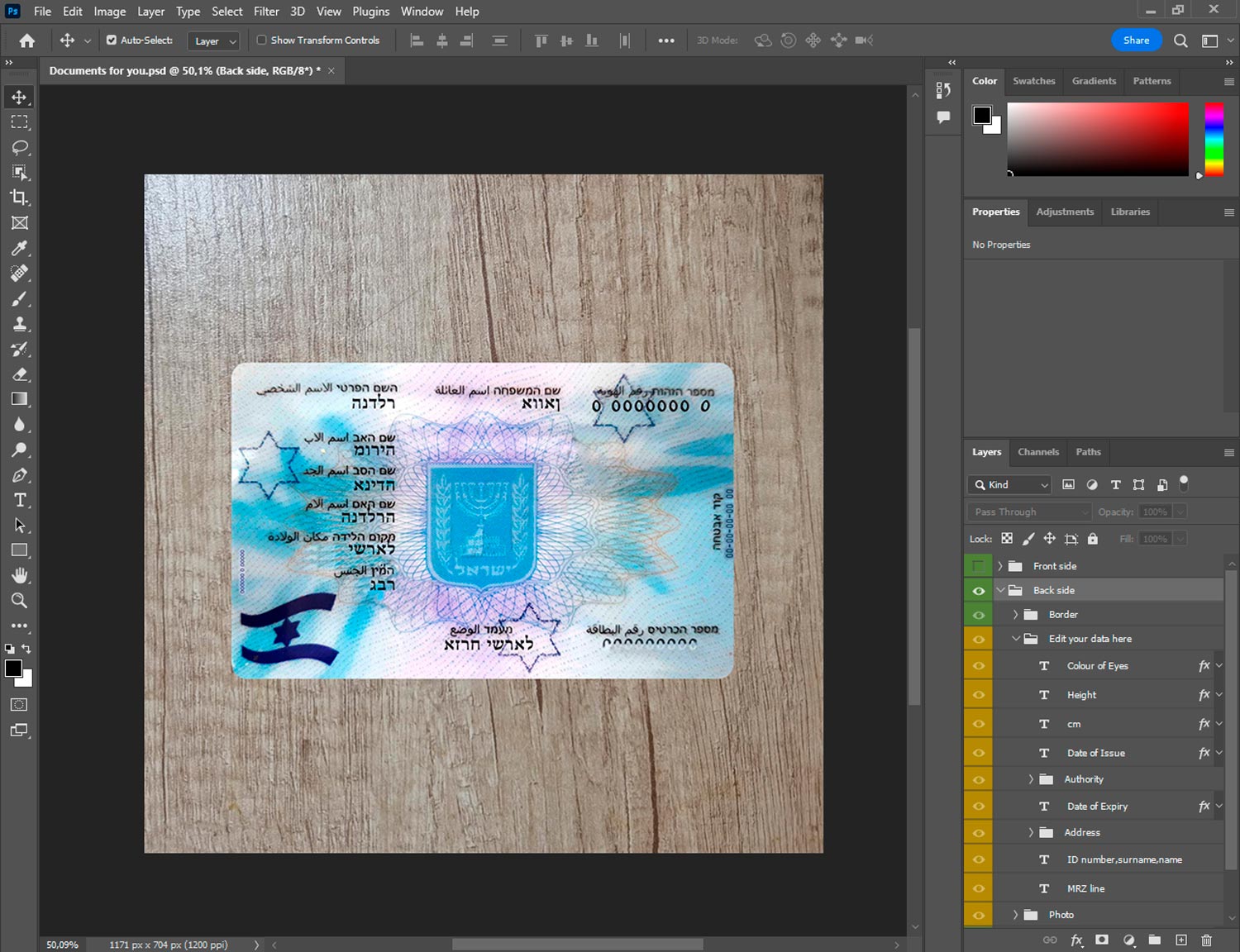 -Israel ID template front.psd + back.psd