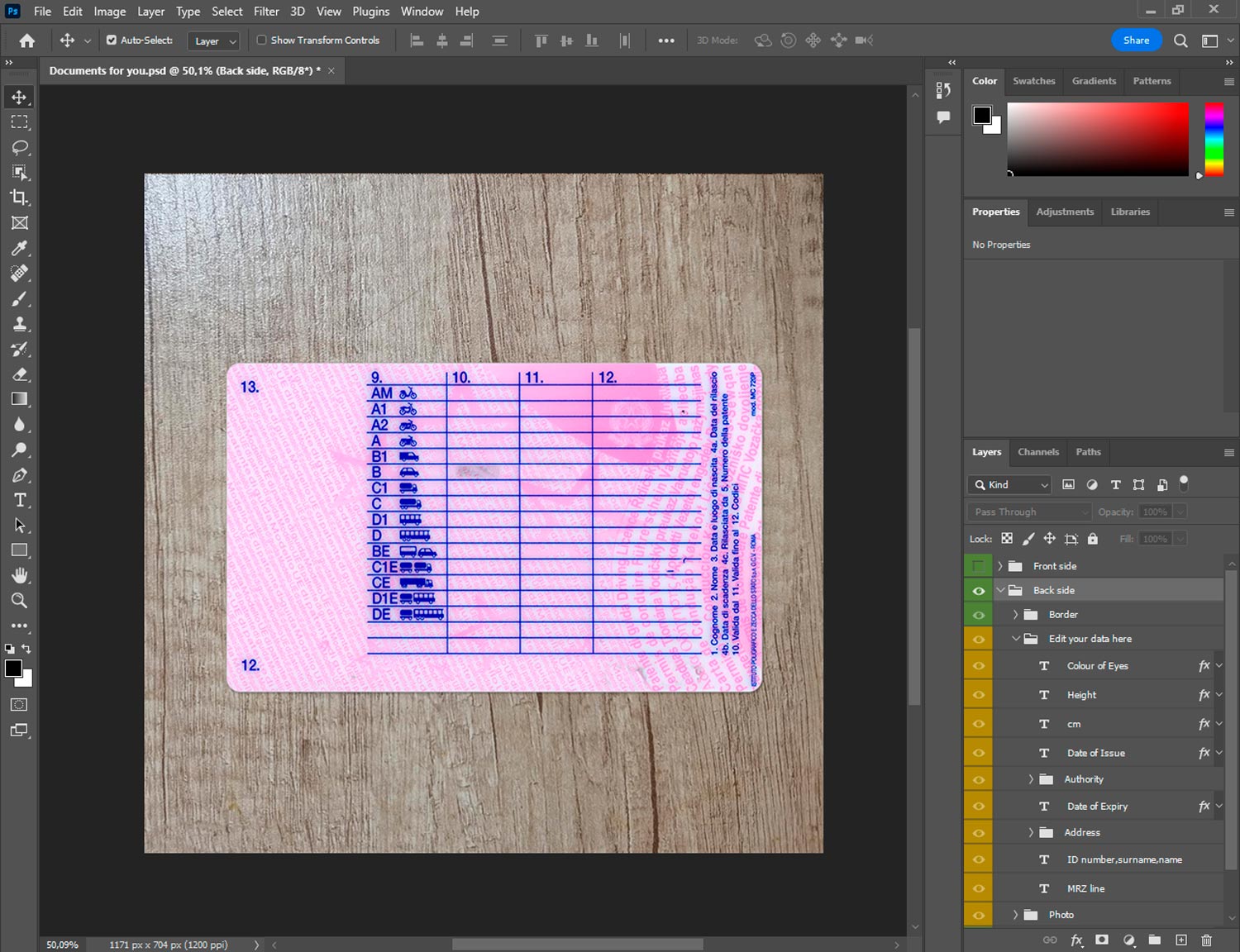 -Italy driver license generator template front.psd + back.psd