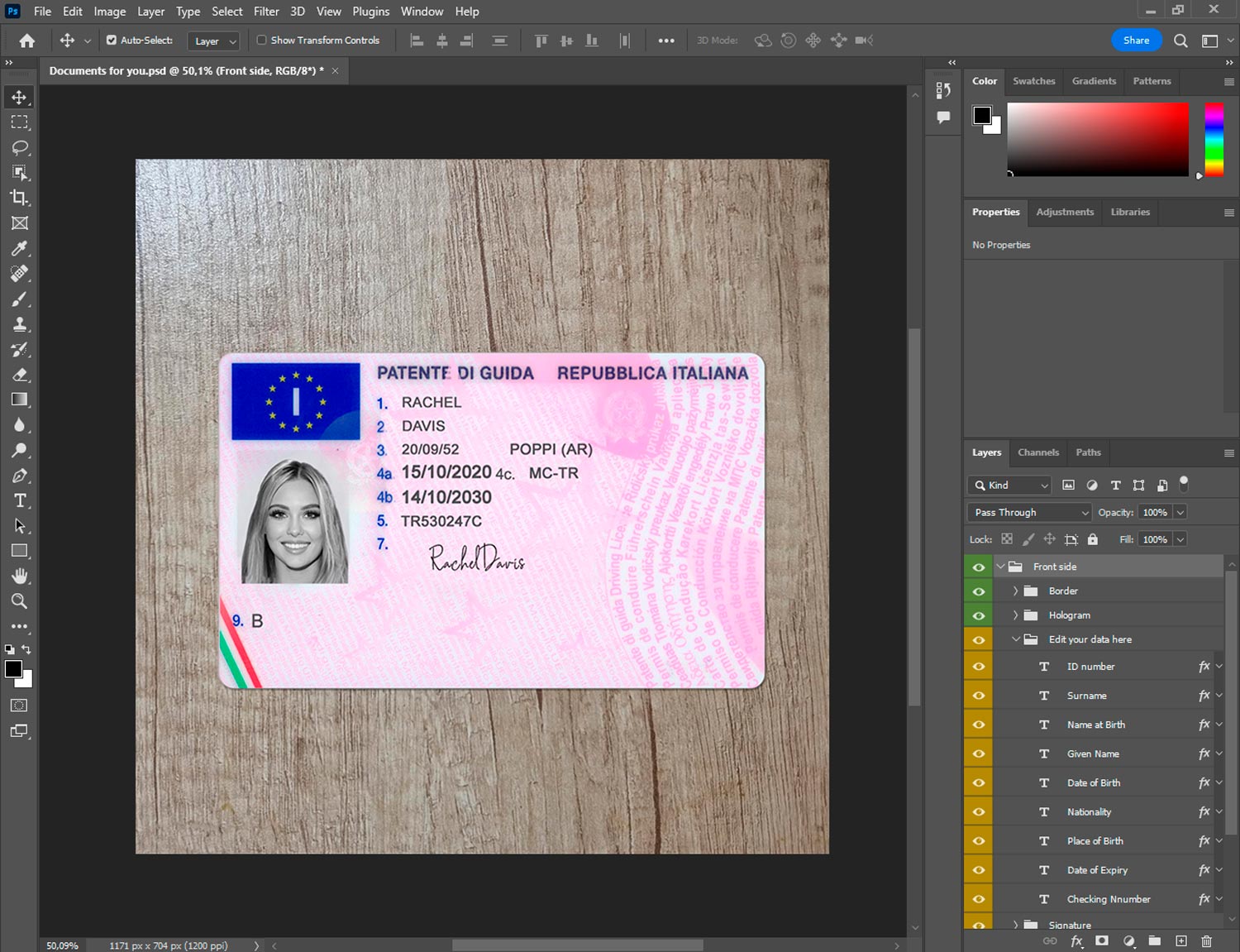 What’s included in Italy driver license generator template package: