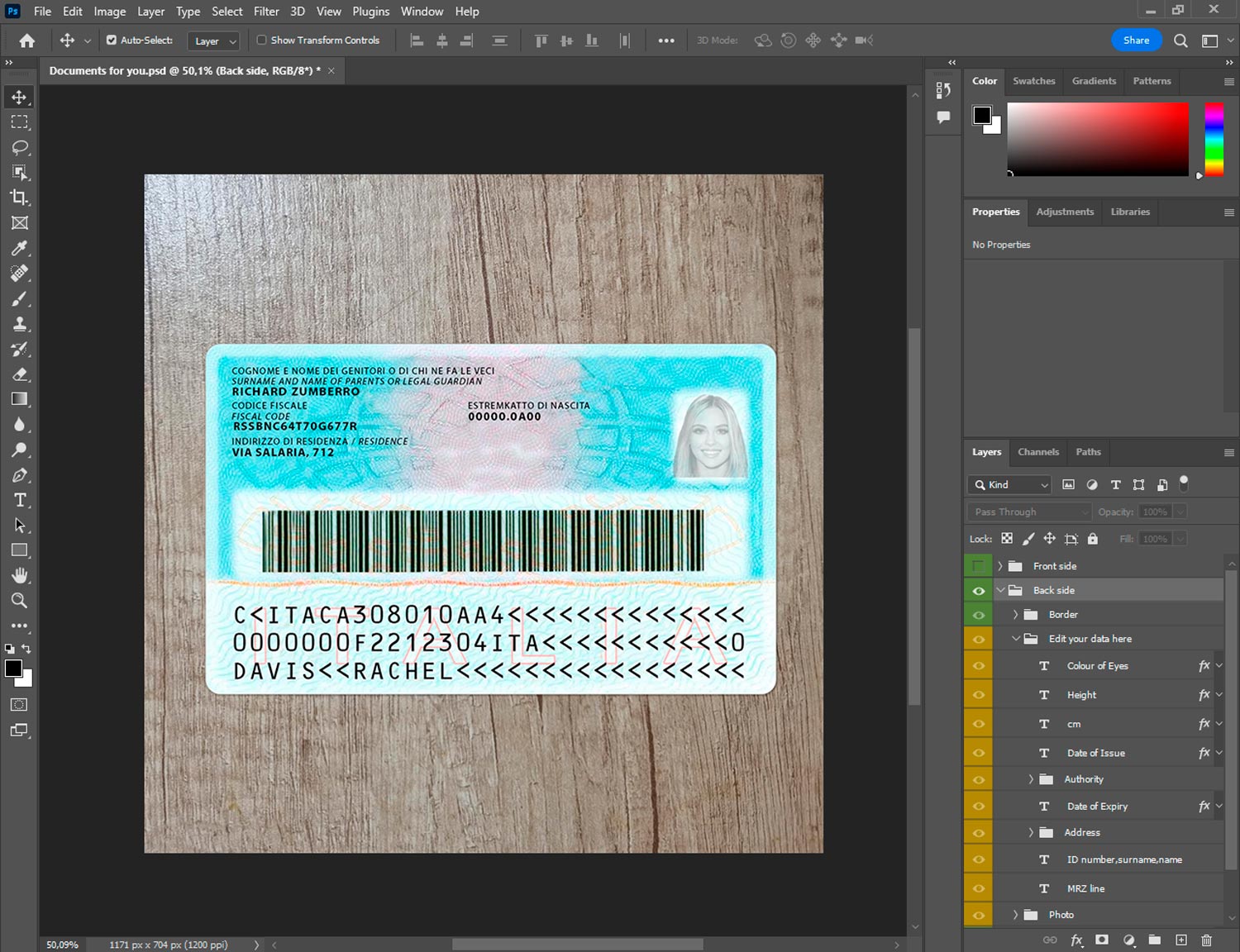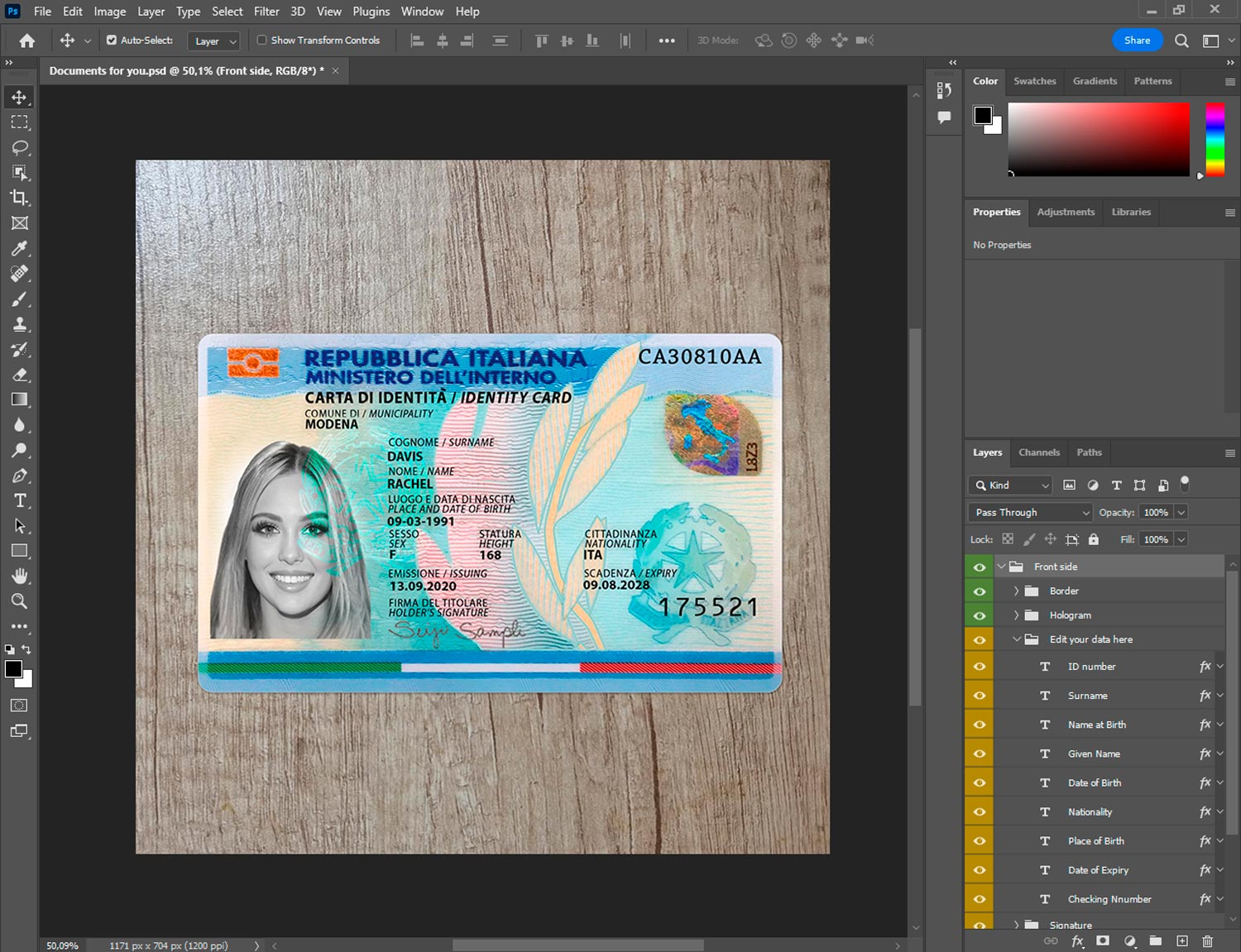 For example, the Italy id card generator template can be used for reading purposes, but it works fine for online verification of any sites for example: