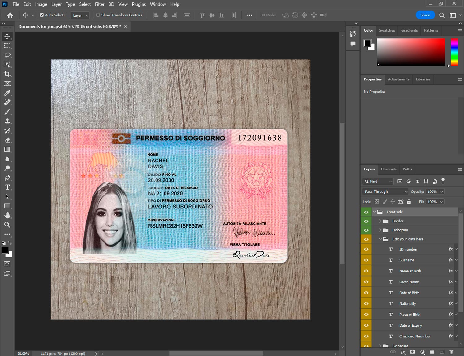-Italy residence permit template front.psd + back.psd