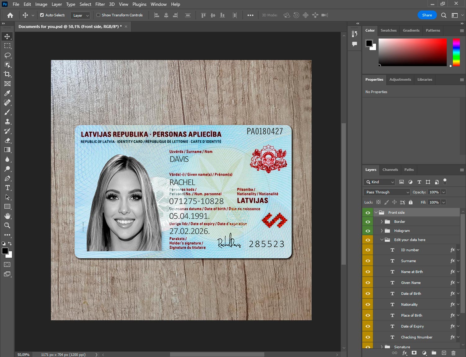 For example, the Latvia id card generator template can be used for reading purposes, but it works fine for online verification of any sites for example: