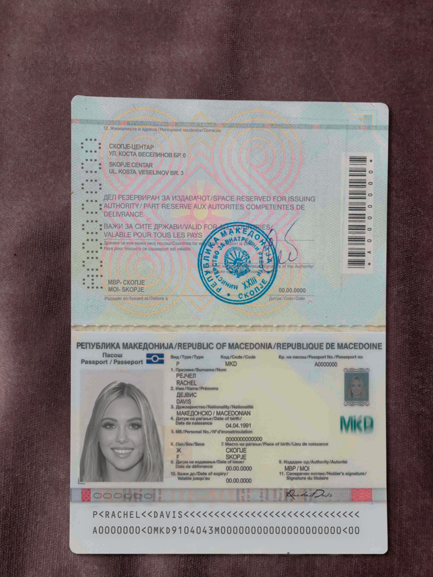For example, the Macedonia Passport Template can be used for reading purposes, but it works fine for online verification of any sites for example: