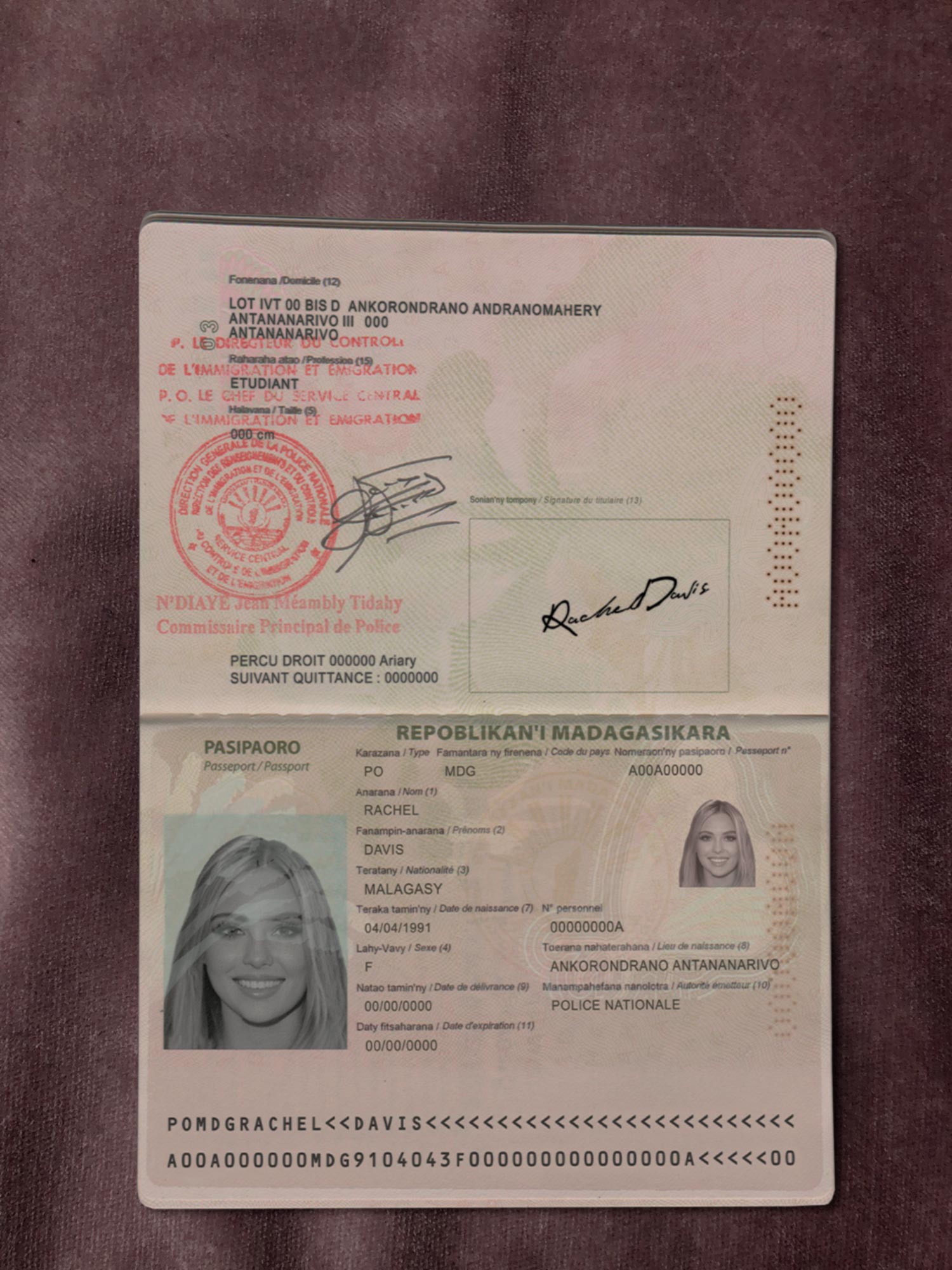 For example, the Madagascar Passport Template can be used for reading purposes, but it works fine for online verification of any sites for example: