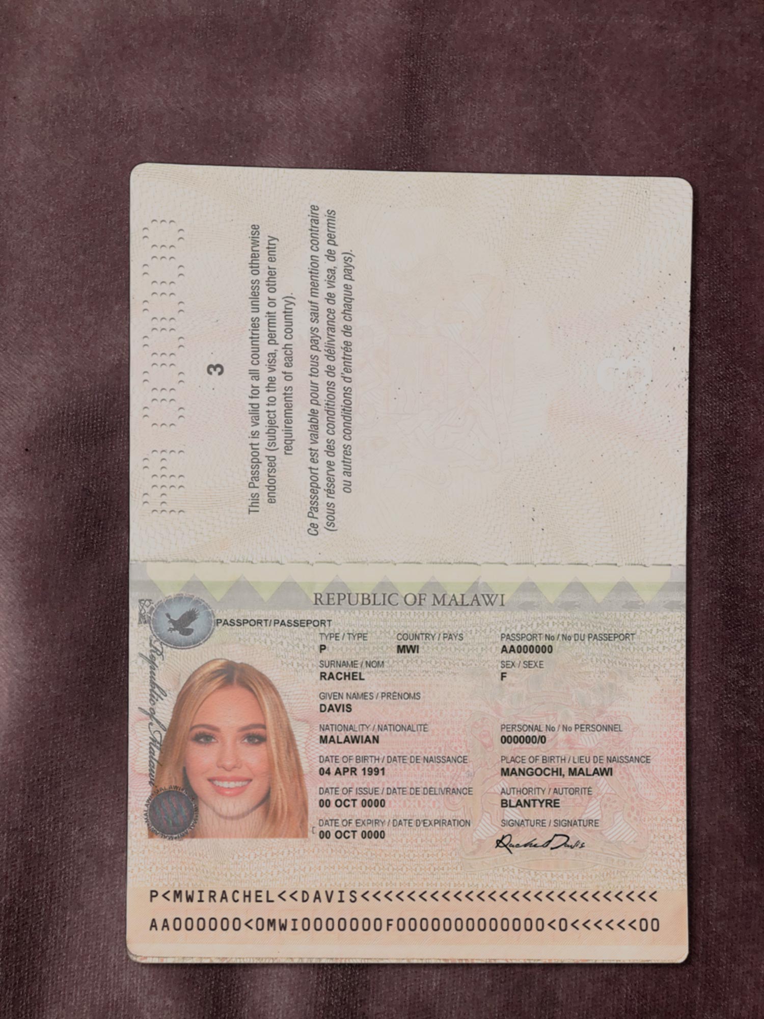For example, the Malawi Passport Template can be used for reading purposes, but it works fine for online verification of any sites for example: