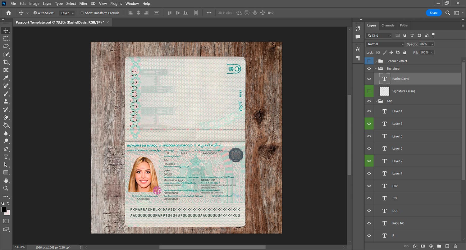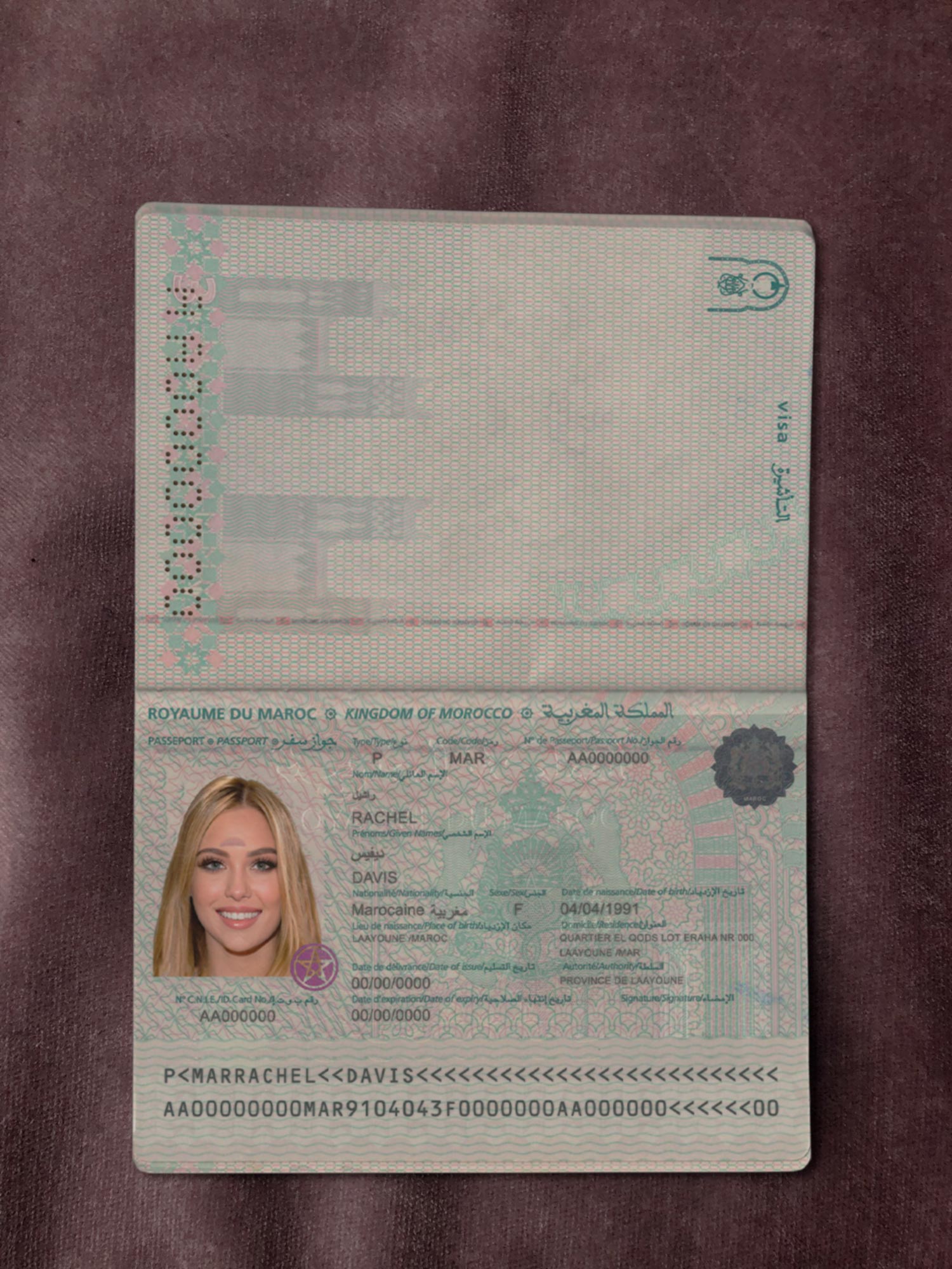 For example, the Marocco Passport Template can be used for reading purposes, but it works fine for online verification of any sites for example: