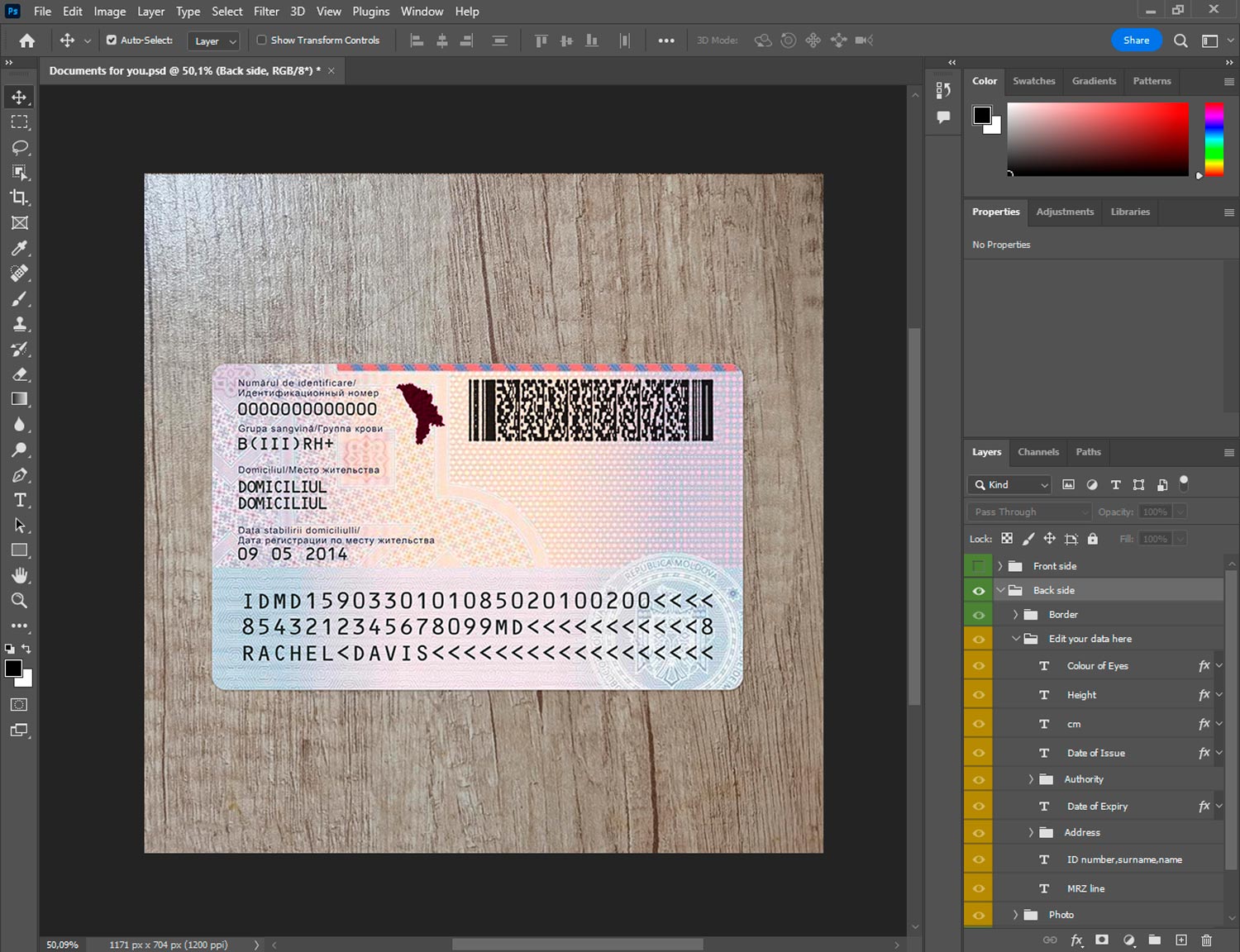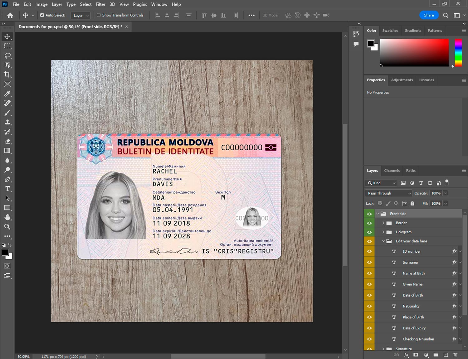 -Moldova ID template front.psd + back.psd