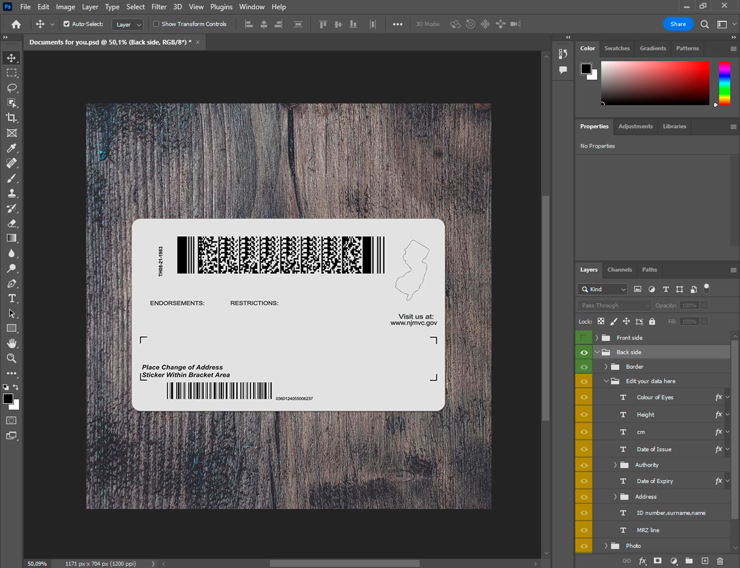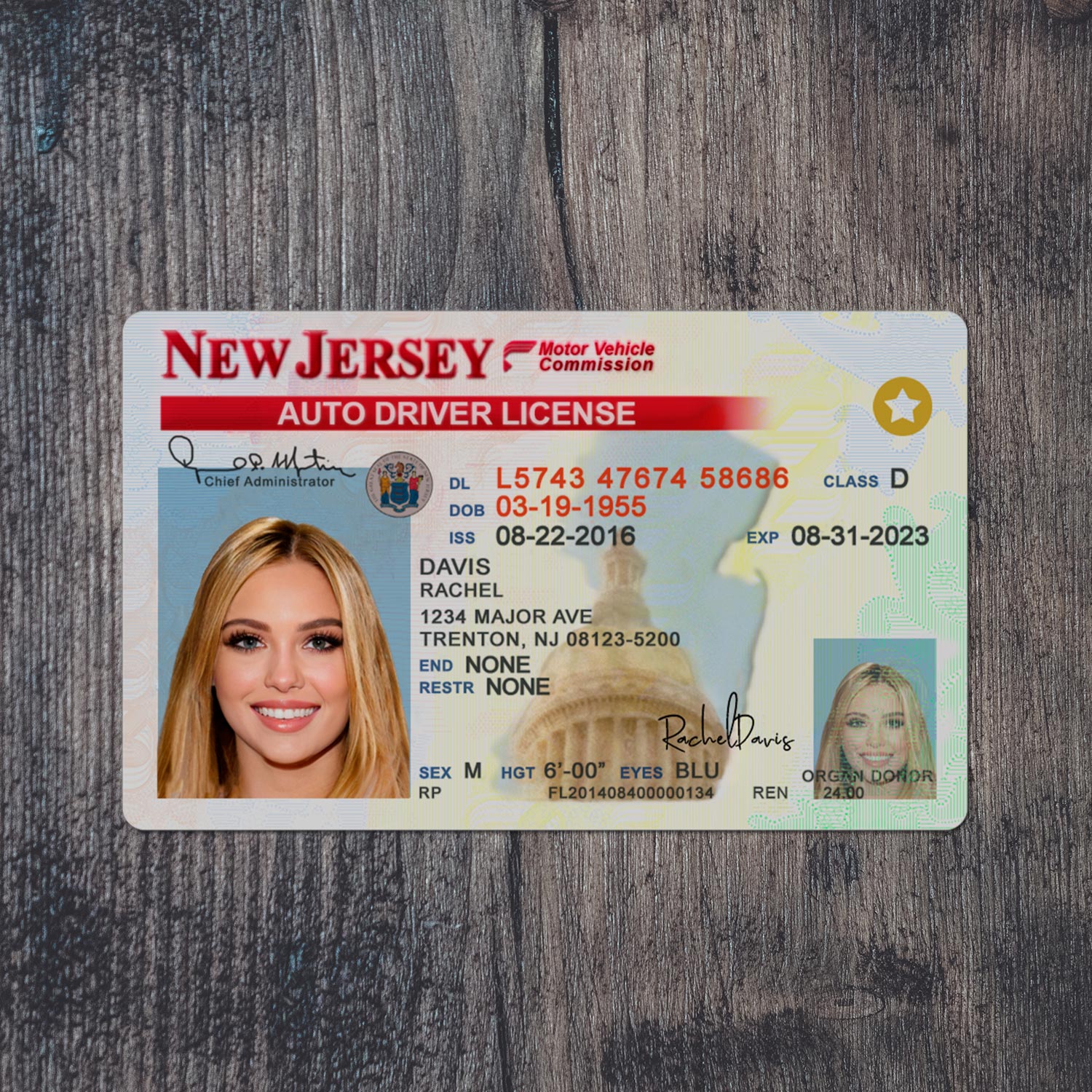 Need a professional-looking result without doing the editing yourself? Select the Photoshop customization option and receive a New Jersey–style digital ID visual with your personal data embedded — accurate, clean, corporate-ready.