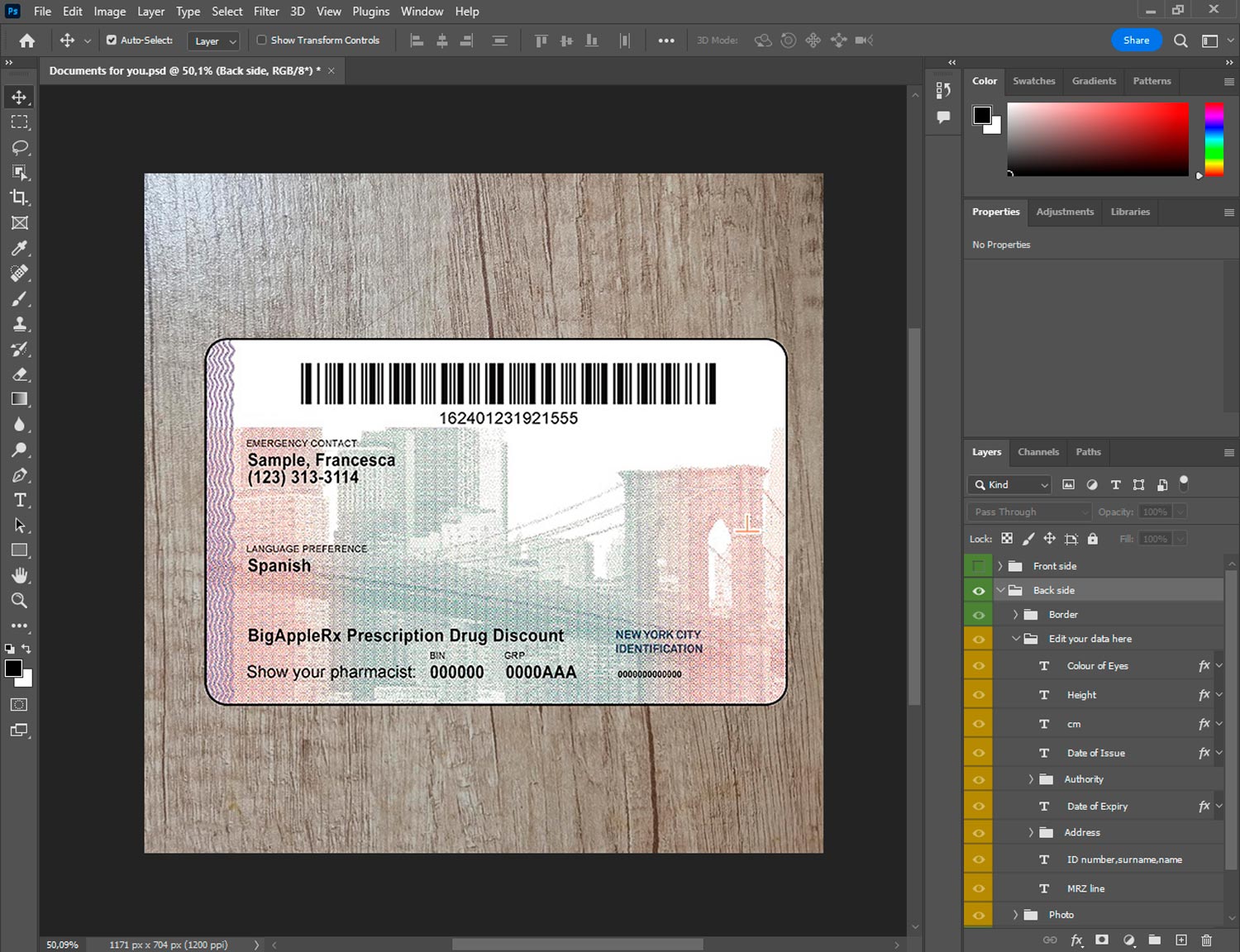 -New York ID template front.psd + back.psd