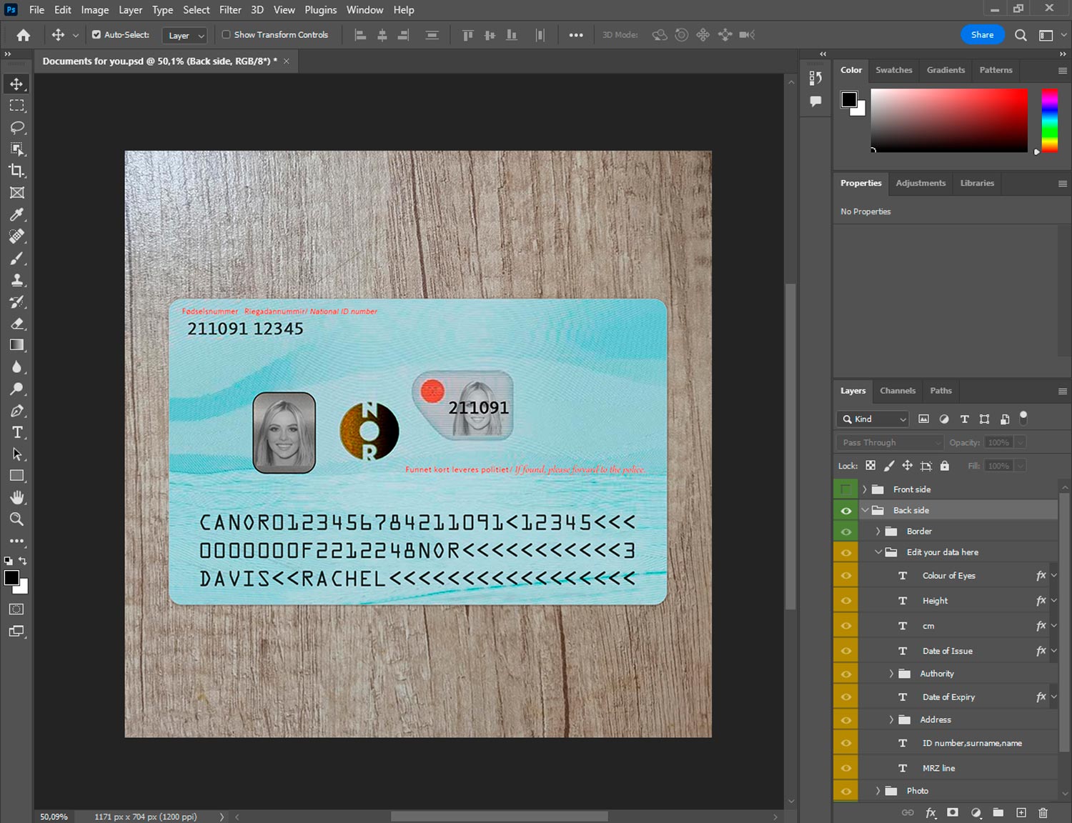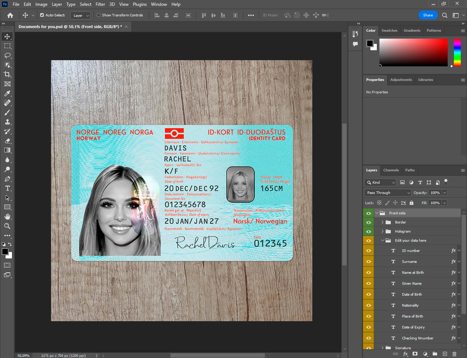 For example, the Norway id card generator template can be used for reading purposes, but it works fine for online verification of any sites for example:
