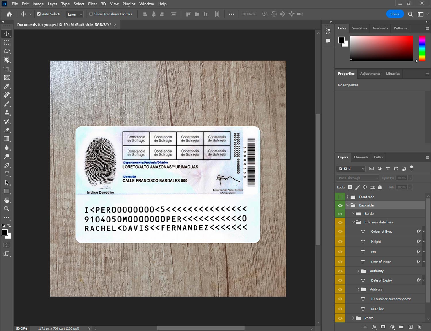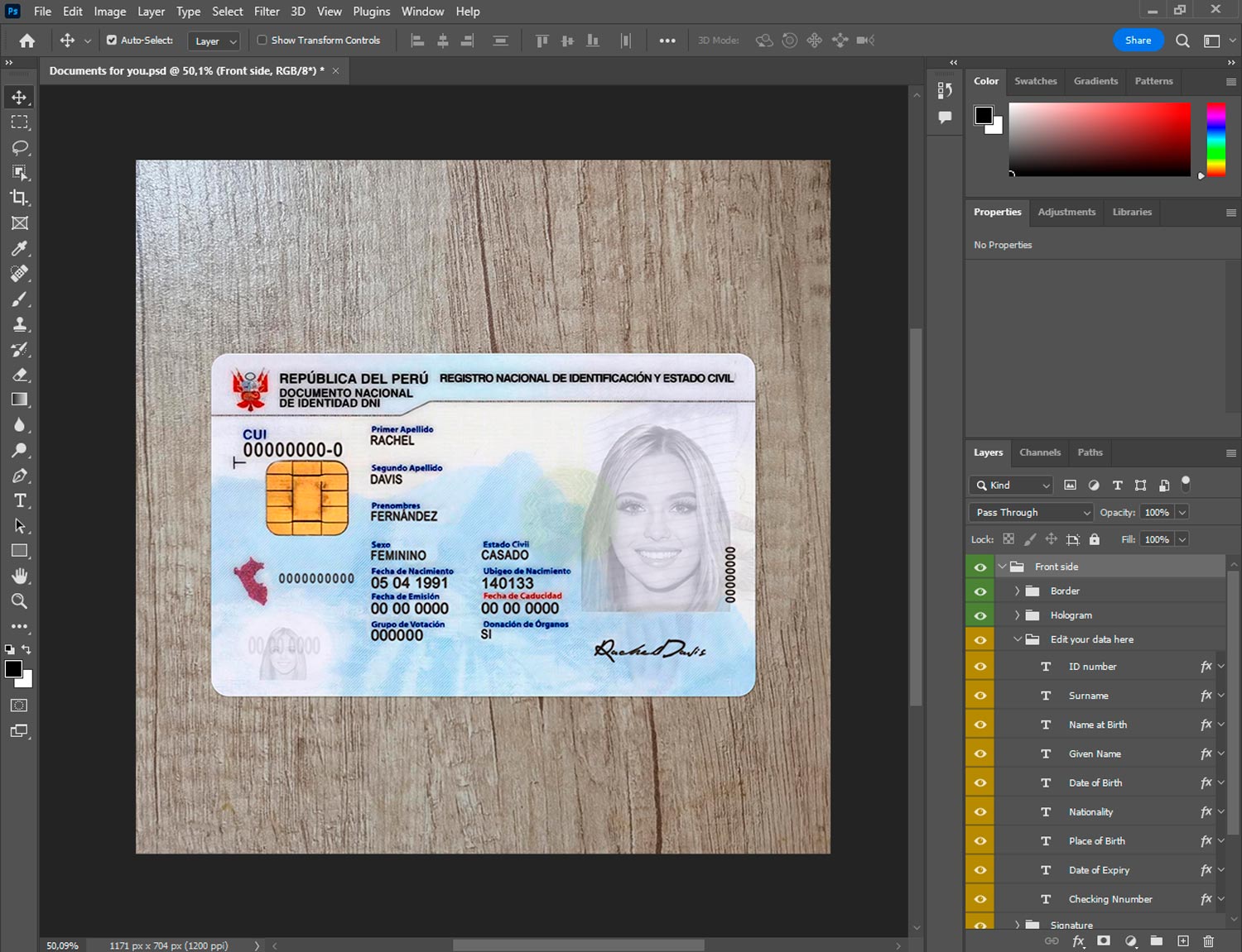 -Peru ID template front.psd + back.psd
