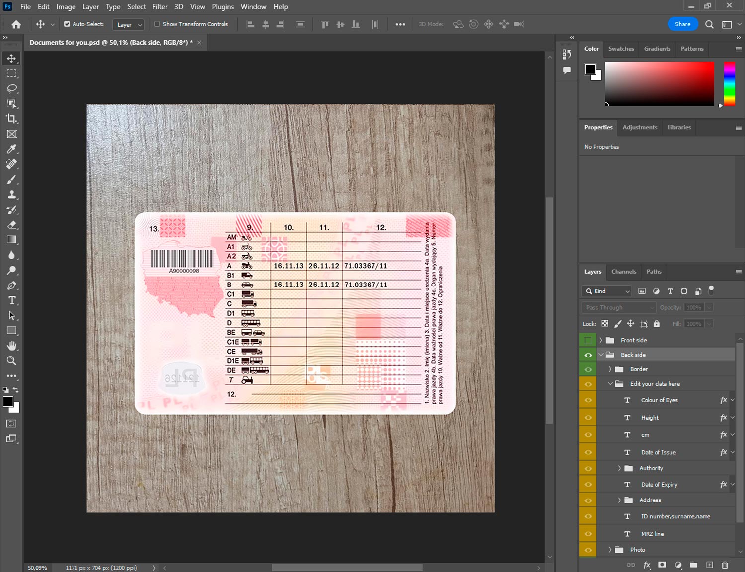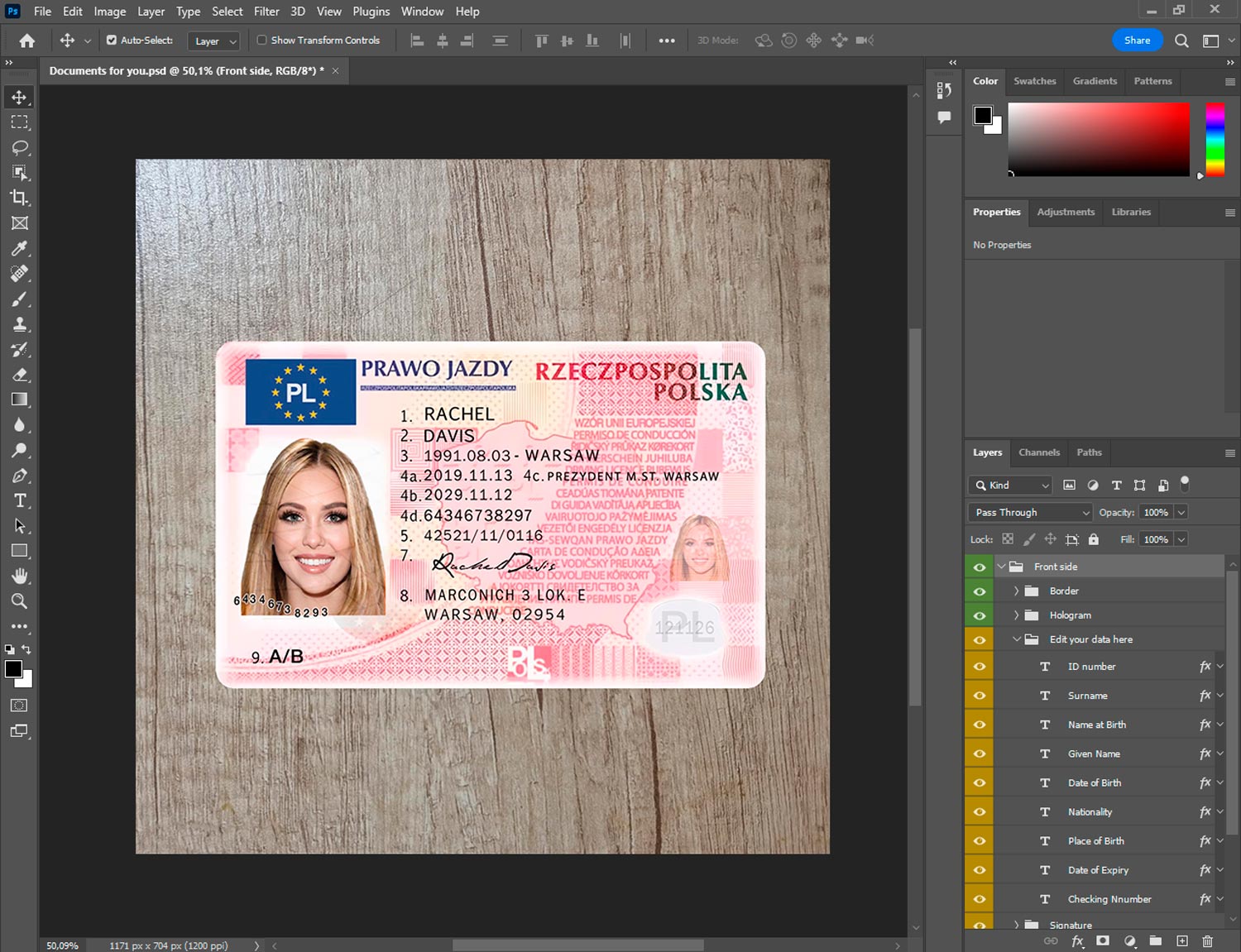 -POLAND driver license template generator template front.psd + back.psd