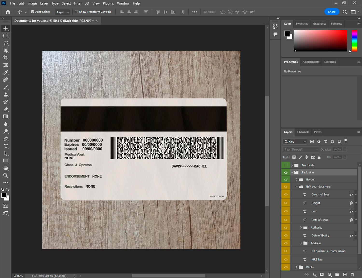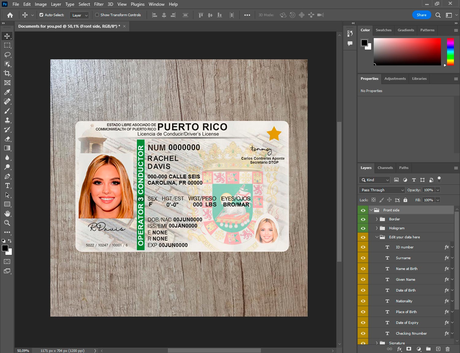 -Puerto Rico drivers licence generator template front.psd + back.psd