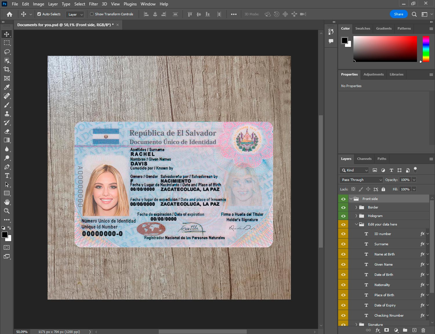 -Salvador ID template front.psd + back.psd