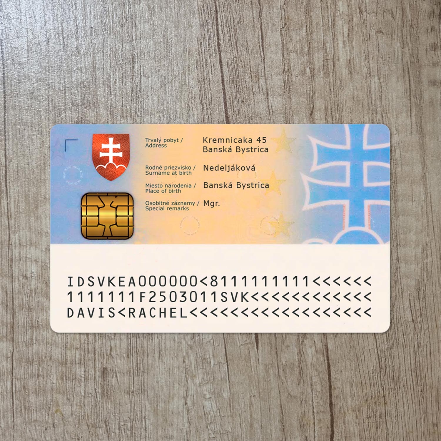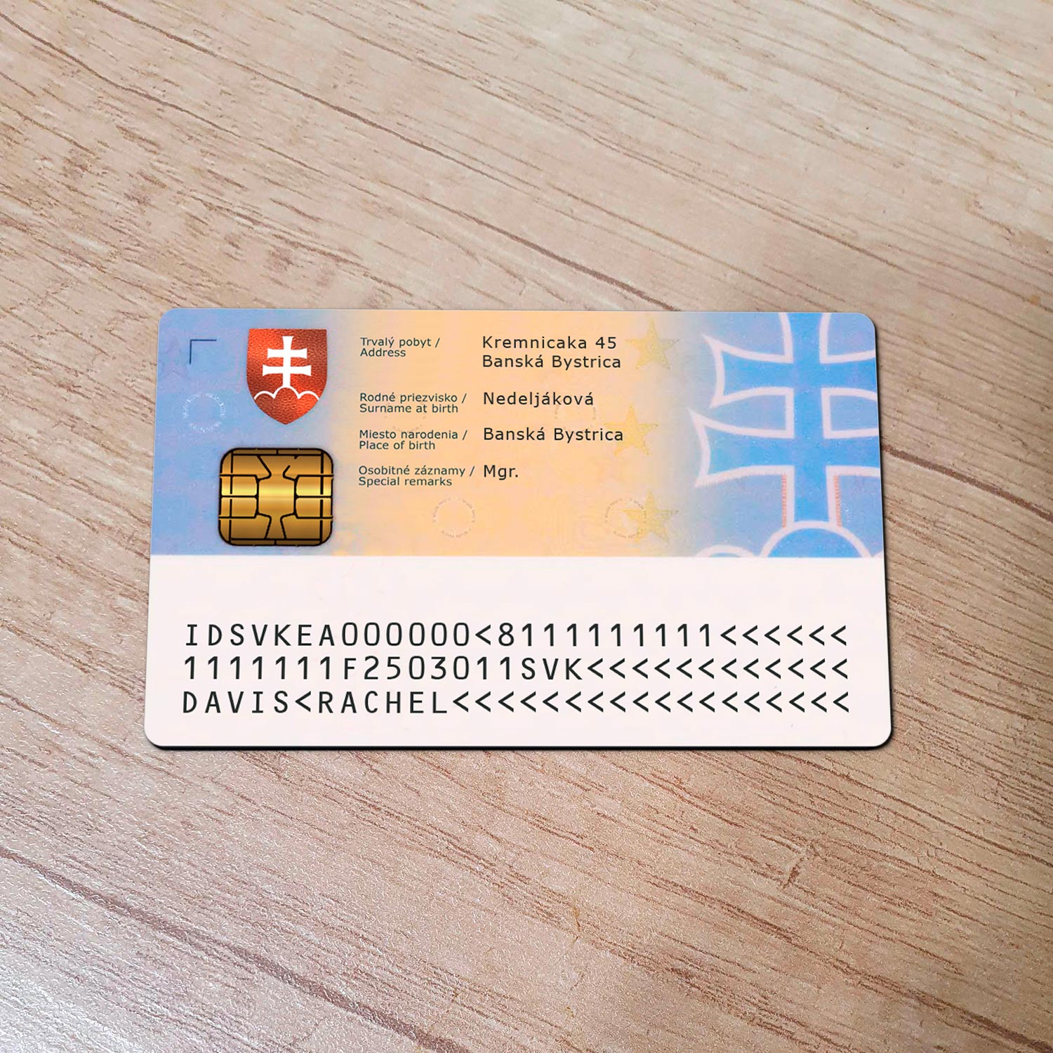 For example, the Slovakia id card generator template can be used for reading purposes, but it works fine for online verification of any sites for example: