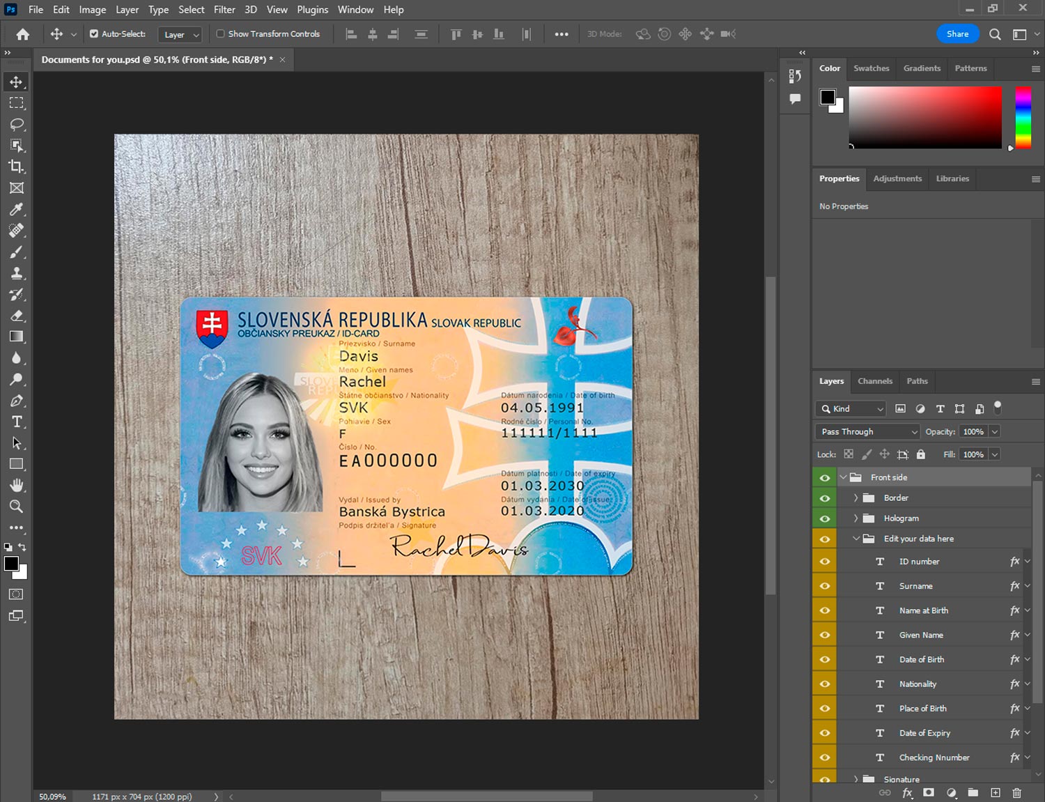 -Slovakia id card generator template front.psd + back.psd