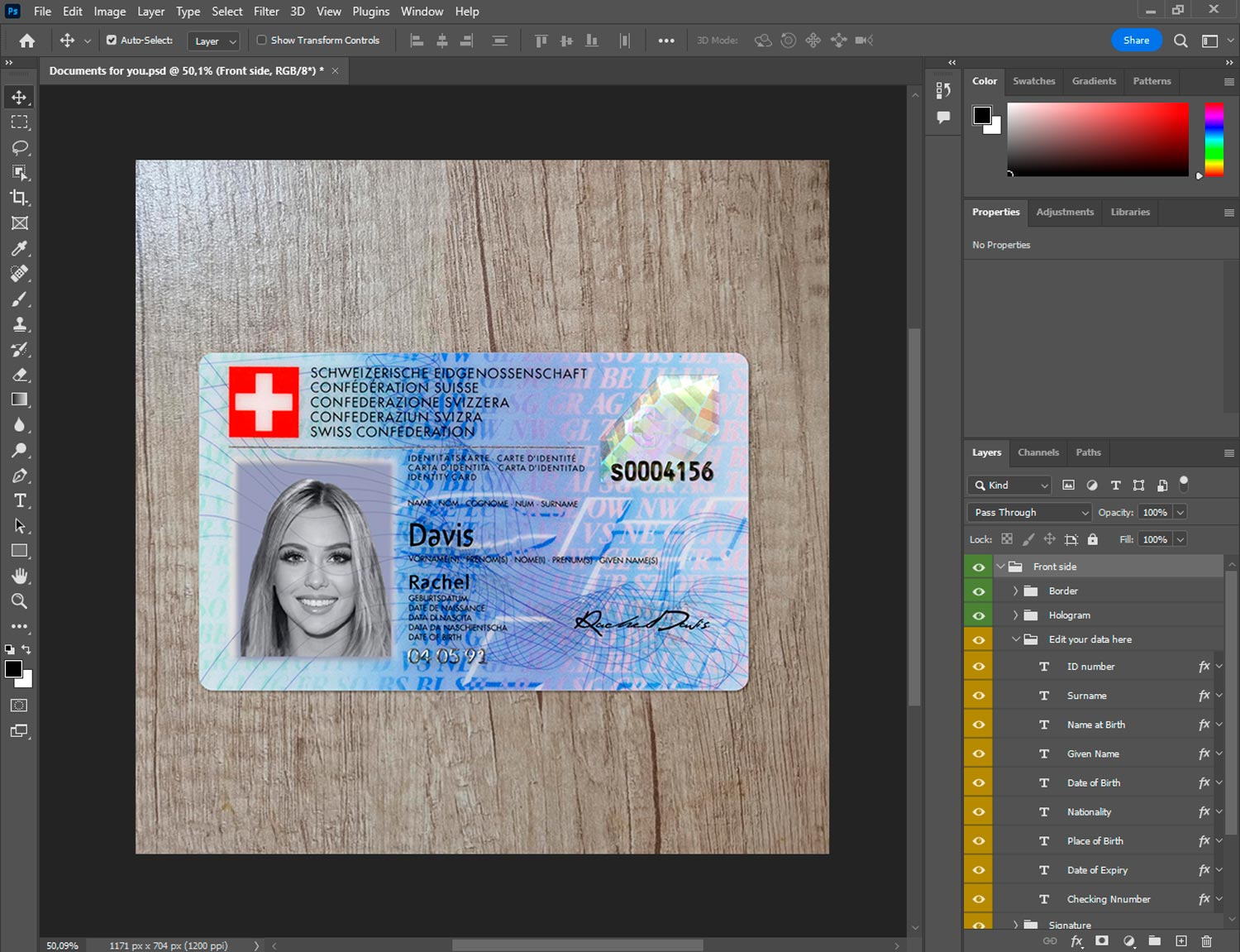 For example, the Switzerland (Swiss) id card generator template can be used for reading purposes, but it works fine for online verification of any sites for example: