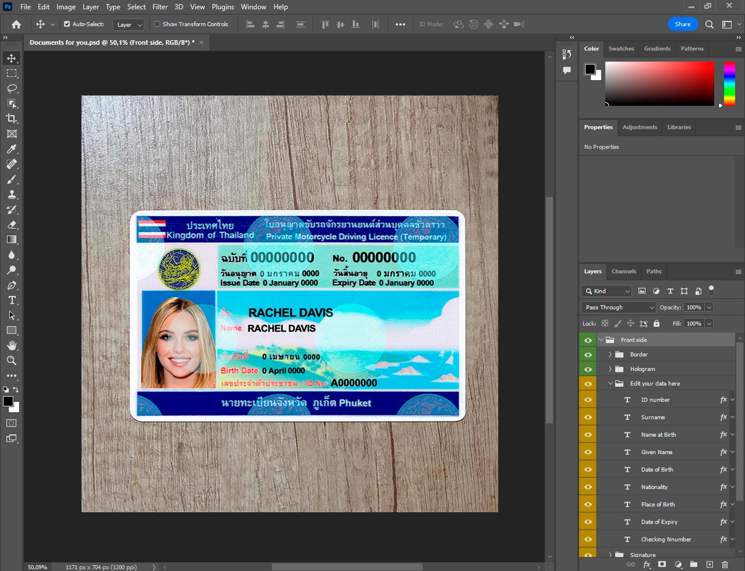 Editable Thailand Driver License Template – Layered PSD File